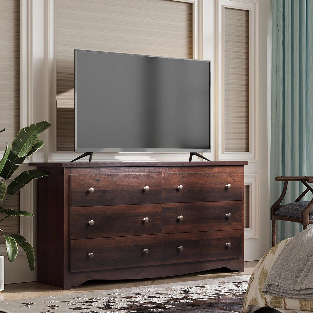 WLIVE Dresser for Bedroom with 6 Drawers, Wide Fabric Dresser TV Stand for 50 Inches TV with Metal Frame, Wooden Top, Fabric Storage Organizer for Livingroom, Hallway, Dark Gray(Dark Gray)