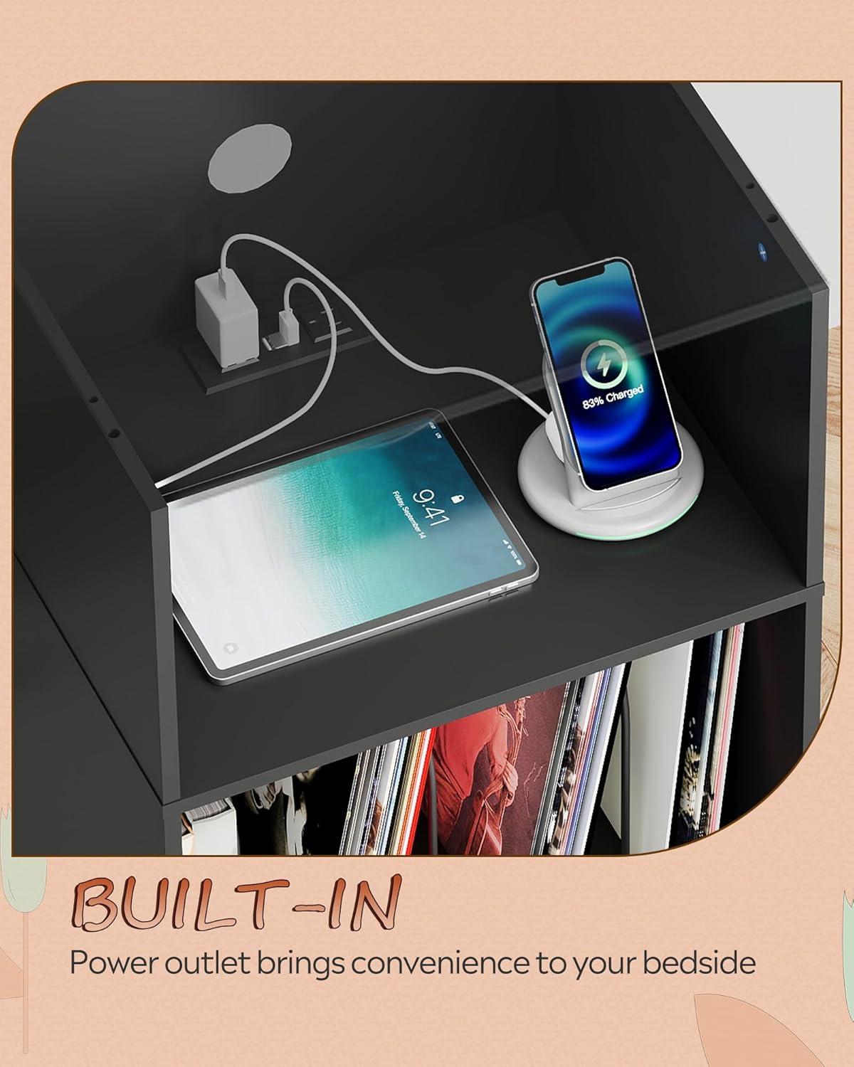 WLIVE Nightstand with Charging Station & Led Lights, Modern Bedside Table with 3 Drawers and Sliding Top, End Table with Hidden Space for Bedroom, Living Room, 26.8” Height Night Stand, Black(White)