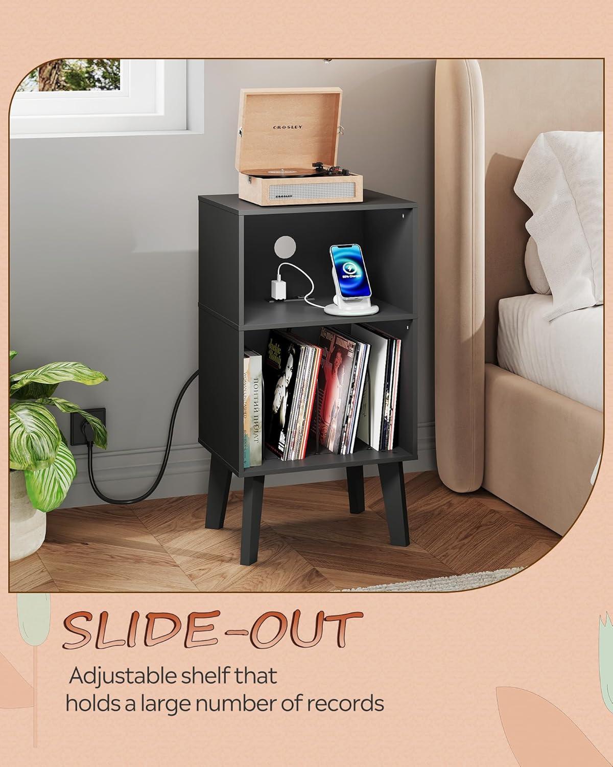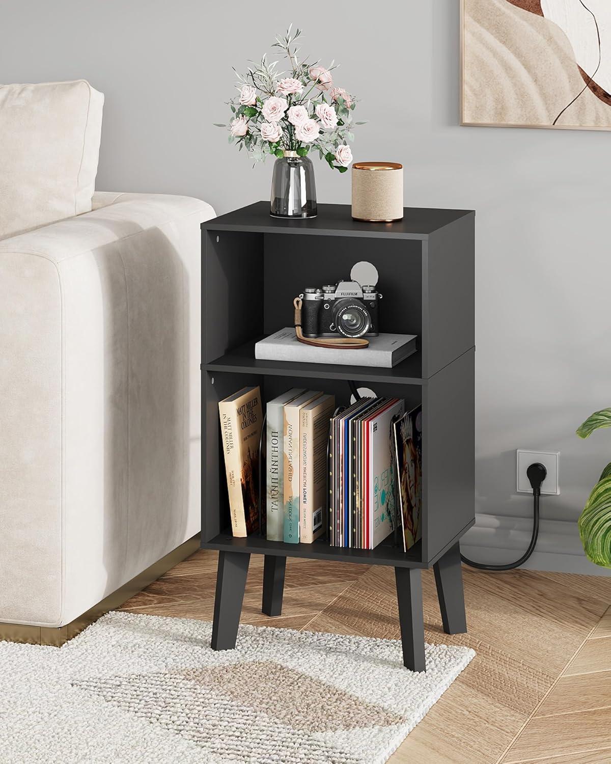 Nightstand, Mid Century Modern Bedside Table with Storage and Open Wood Shelf, Small End Table with Wood Legs for Living Room, Bedroom and Small Spaces, Rustic Brown(Black)
