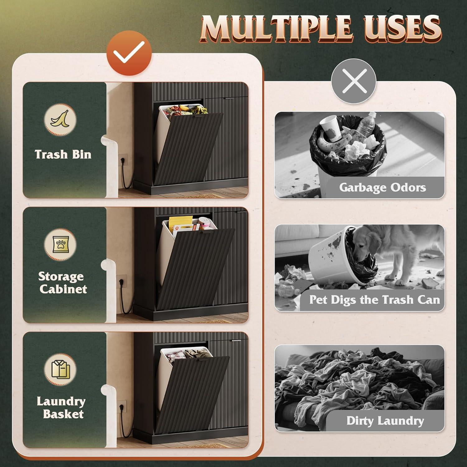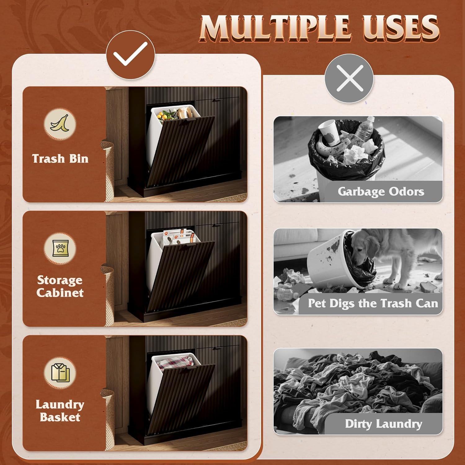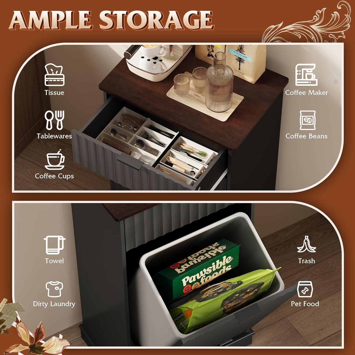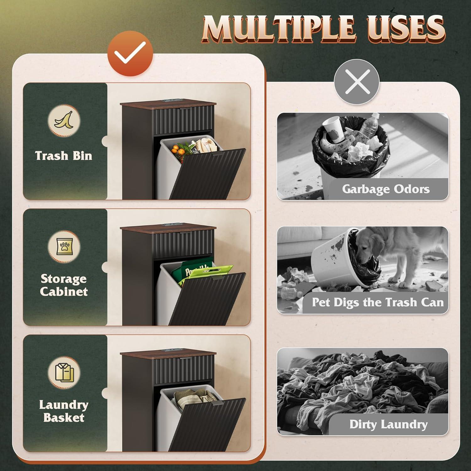 【Hidden Odor-Blocking Design】Keep your space tidy and odor-free with this hidden trash can cabinet. It conceals waste effectively, prevents pets from accessing trash, and enhances kitchen aesthetics while saving floor space.