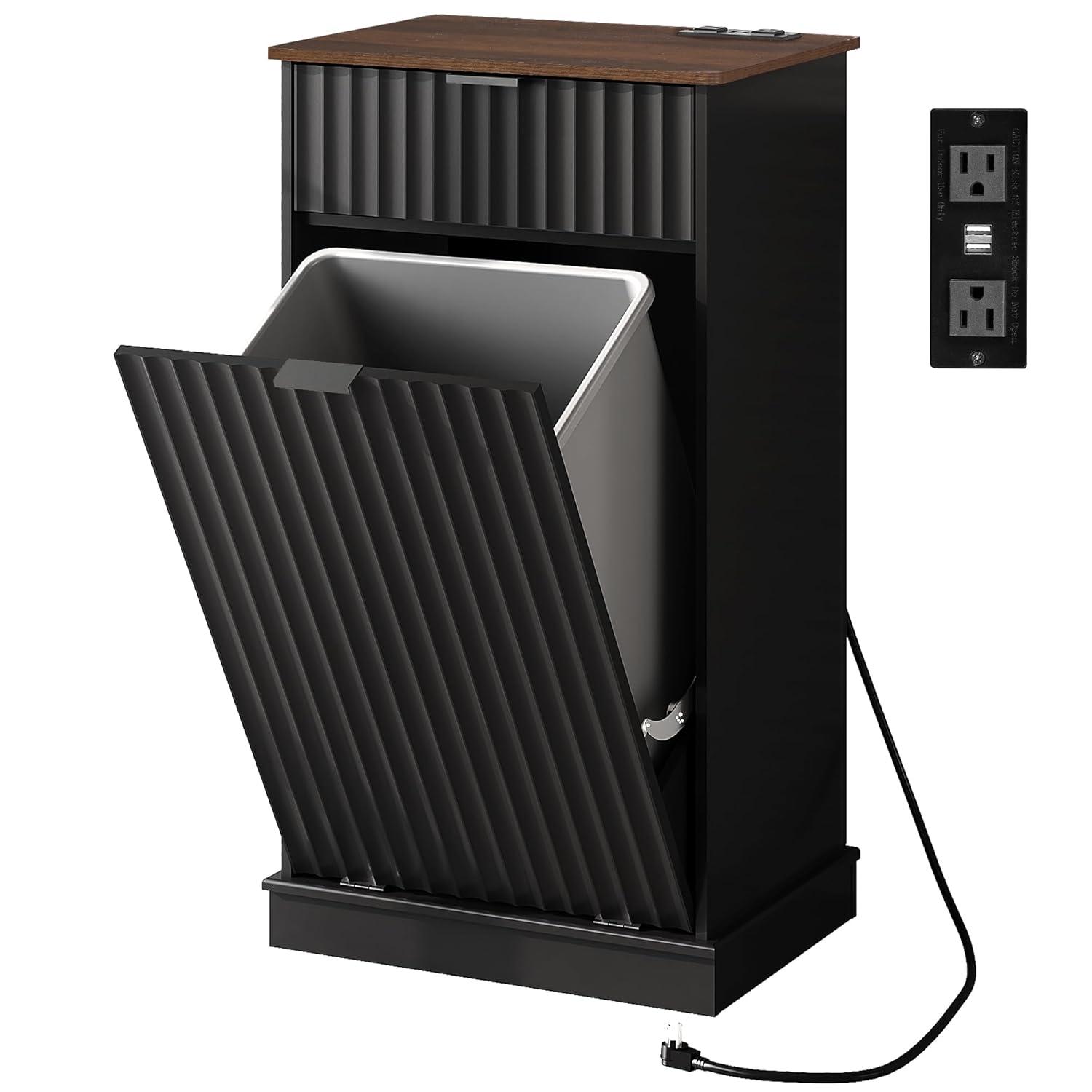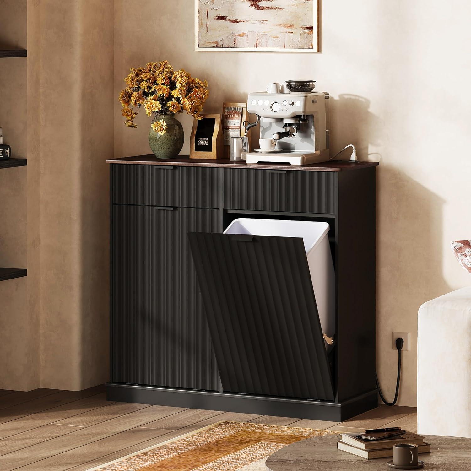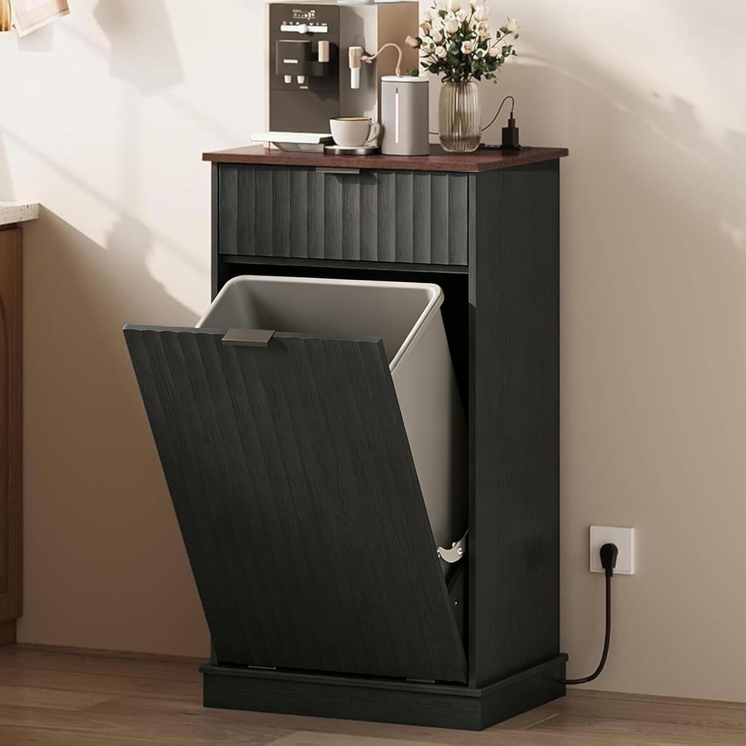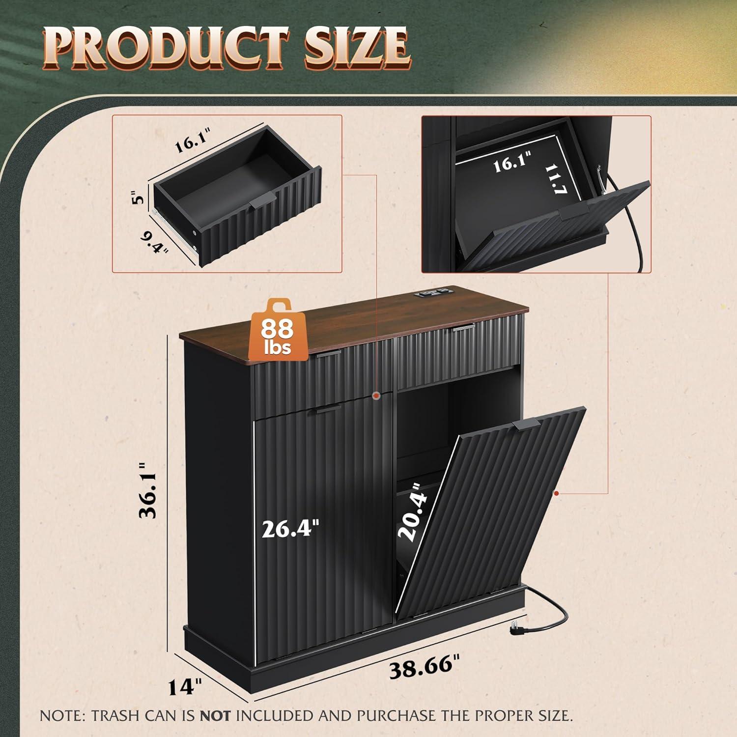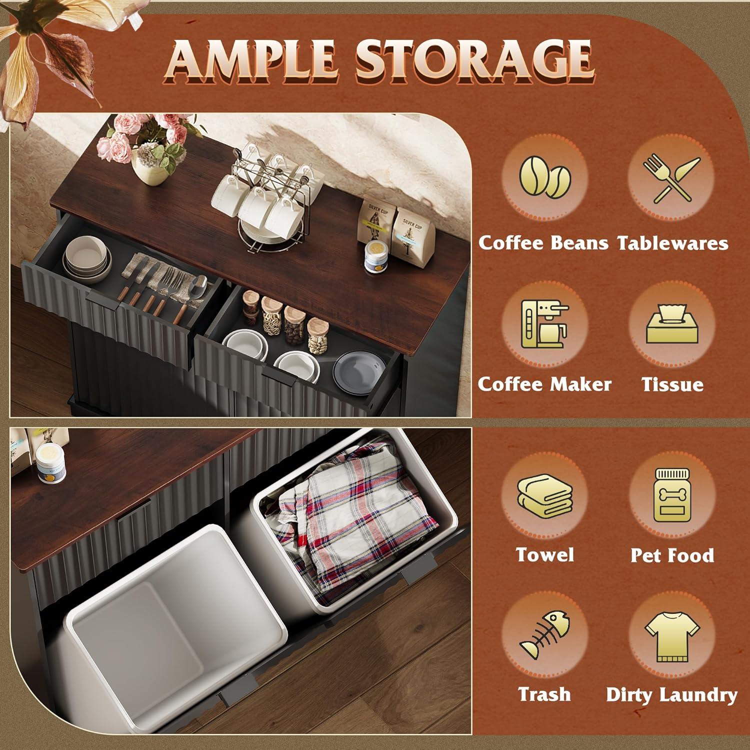 【Hidden Odor-Blocking Design】Keep your space tidy and odor-free with this hidden trash can cabinet. It conceals waste effectively, prevents pets from accessing trash, and enhances kitchen aesthetics while saving floor space.