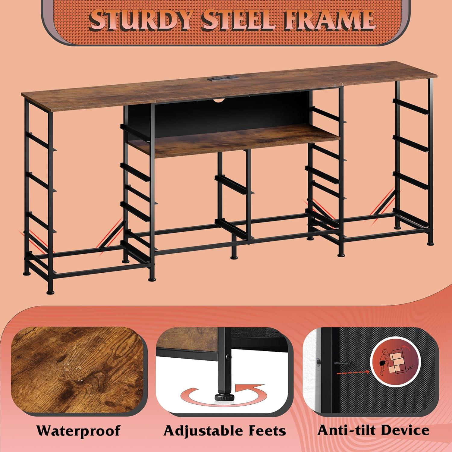 【✨ Powered Storage Cabinet】Say goodbye to messy wires! TV entertainment center is equipped with 2 AC sockets +2 USB ports, 1.5m flexible cable length, TV, game console, router a power board can be done, instant increase desktop cleanliness by 50%, through UL/ETL certification, electricity safety!