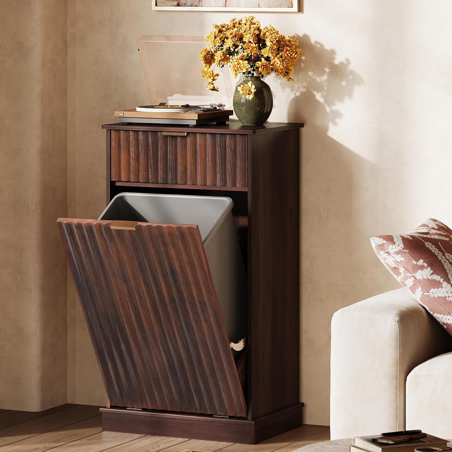【Hidden Odor-Blocking Design】Keep your space tidy and odor-free with this hidden trash can cabinet. It conceals waste effectively, prevents pets from accessing trash, and enhances kitchen aesthetics while saving floor space.