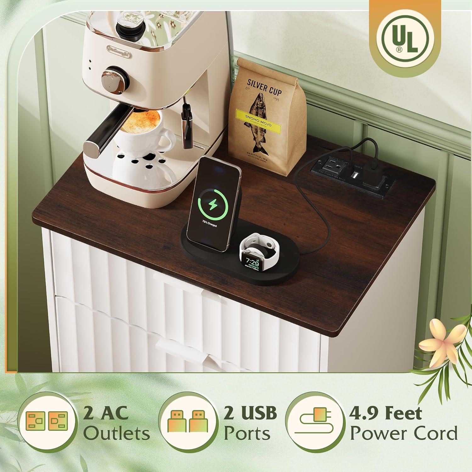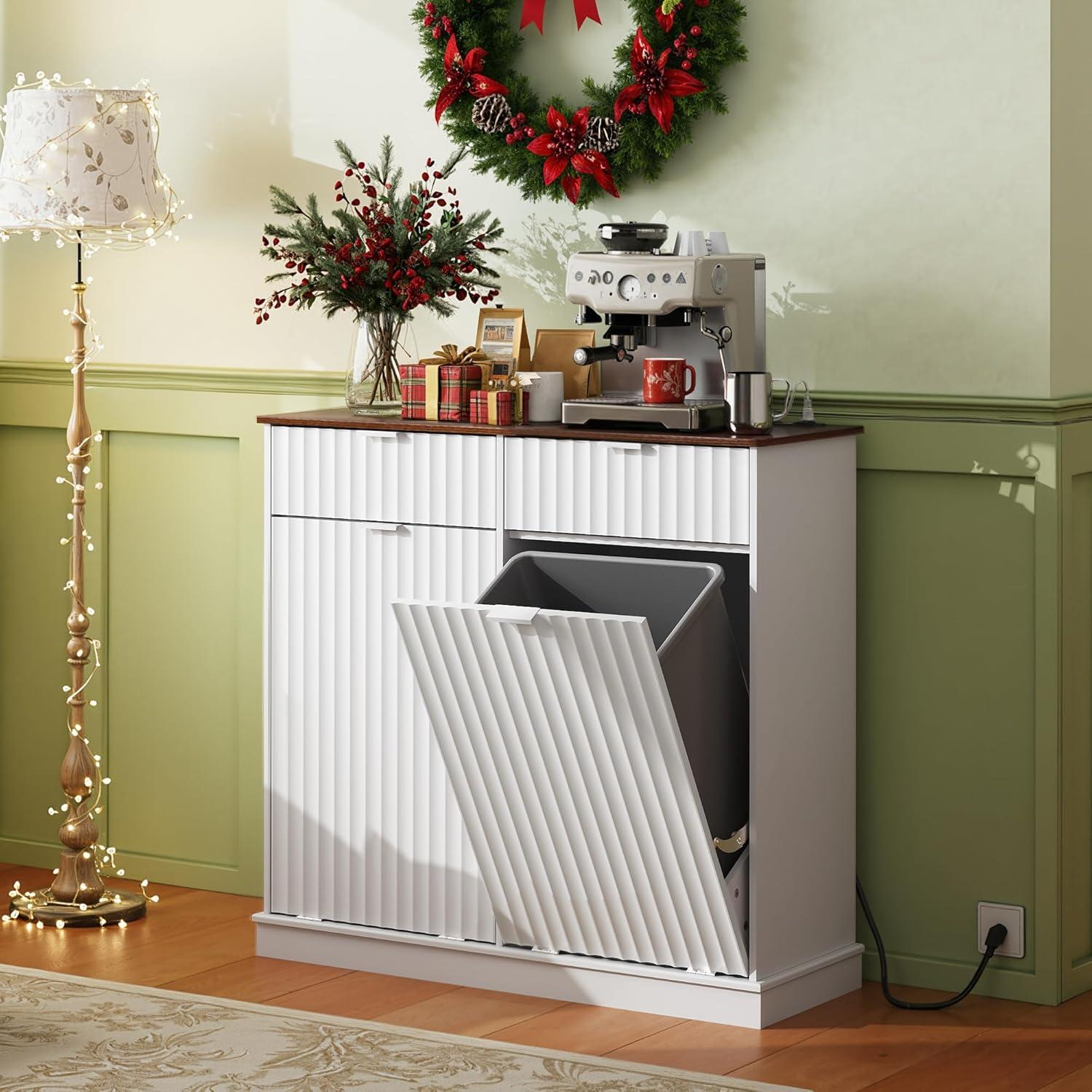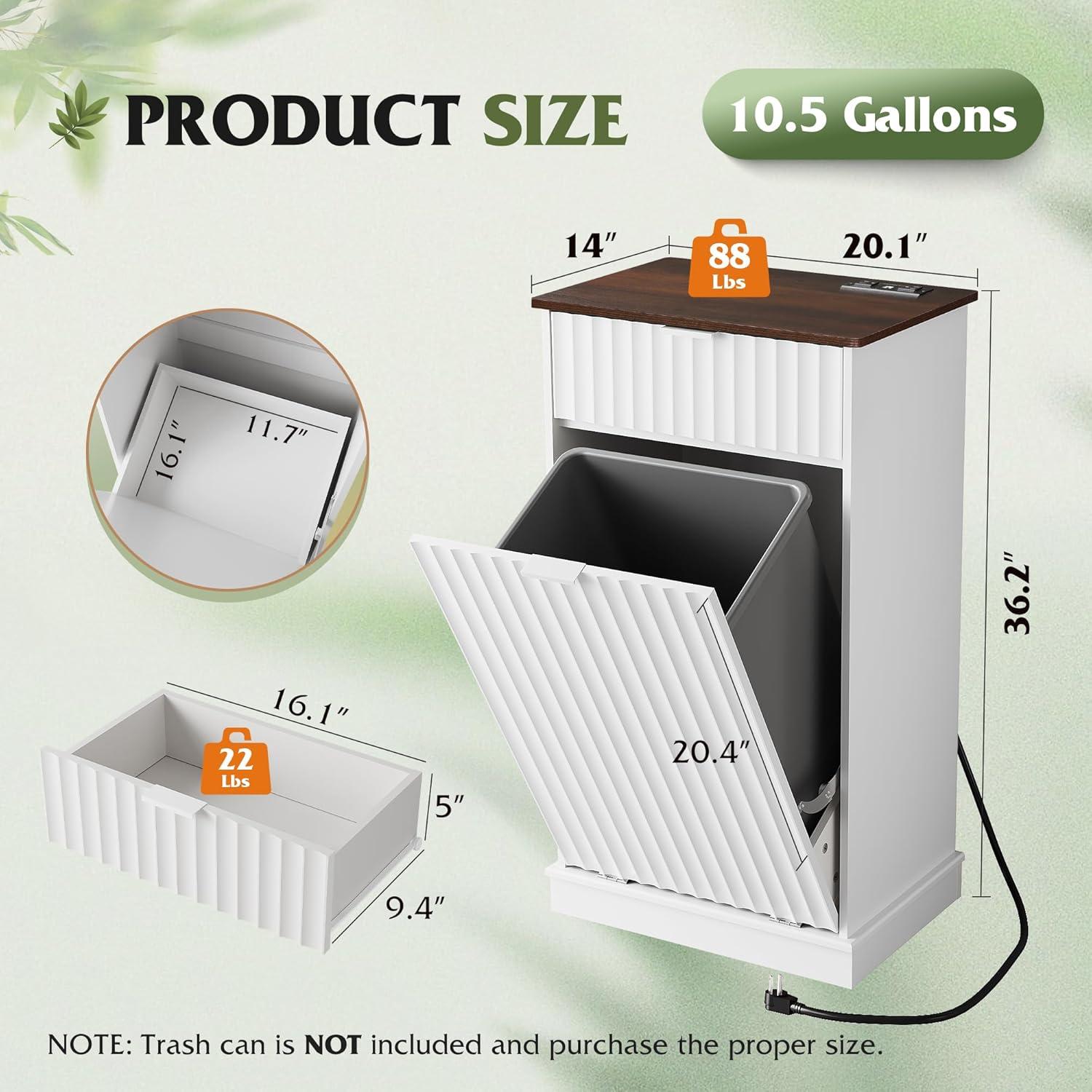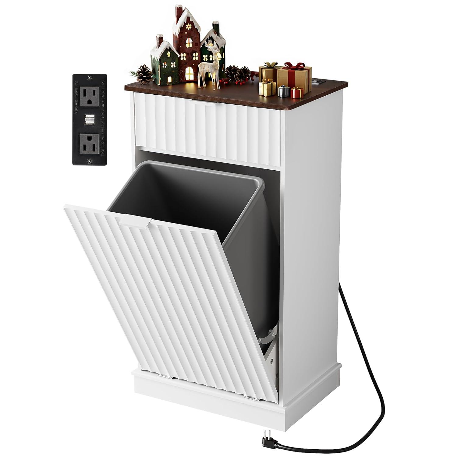 【Built-in Power Outlets】Equipped with 2 AC outlets and 2 USB ports and a 4.92-foot power cord, this trash can cabinet lets you conveniently power appliances like coffee makers or blenders while maintaining a clutter-free kitchen.