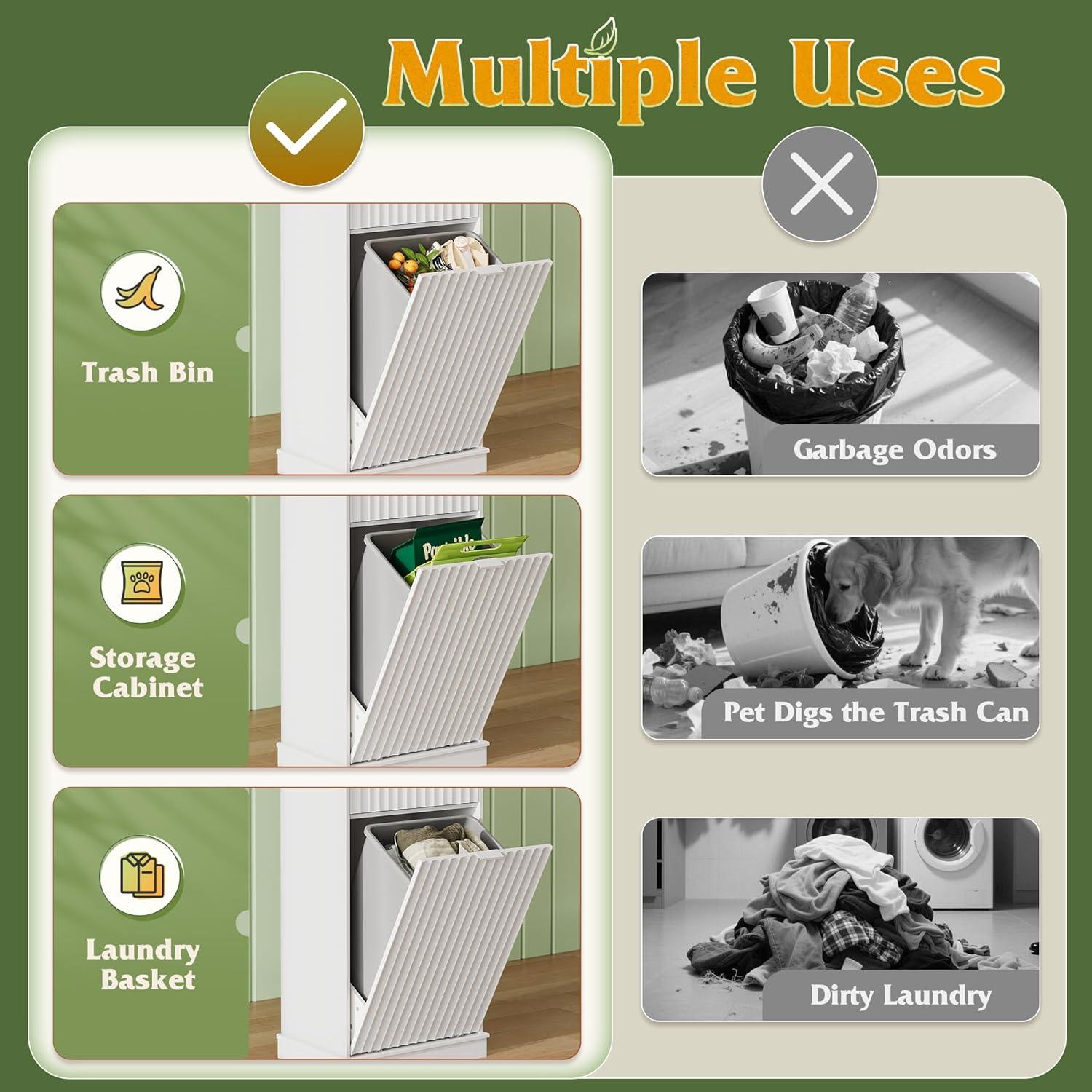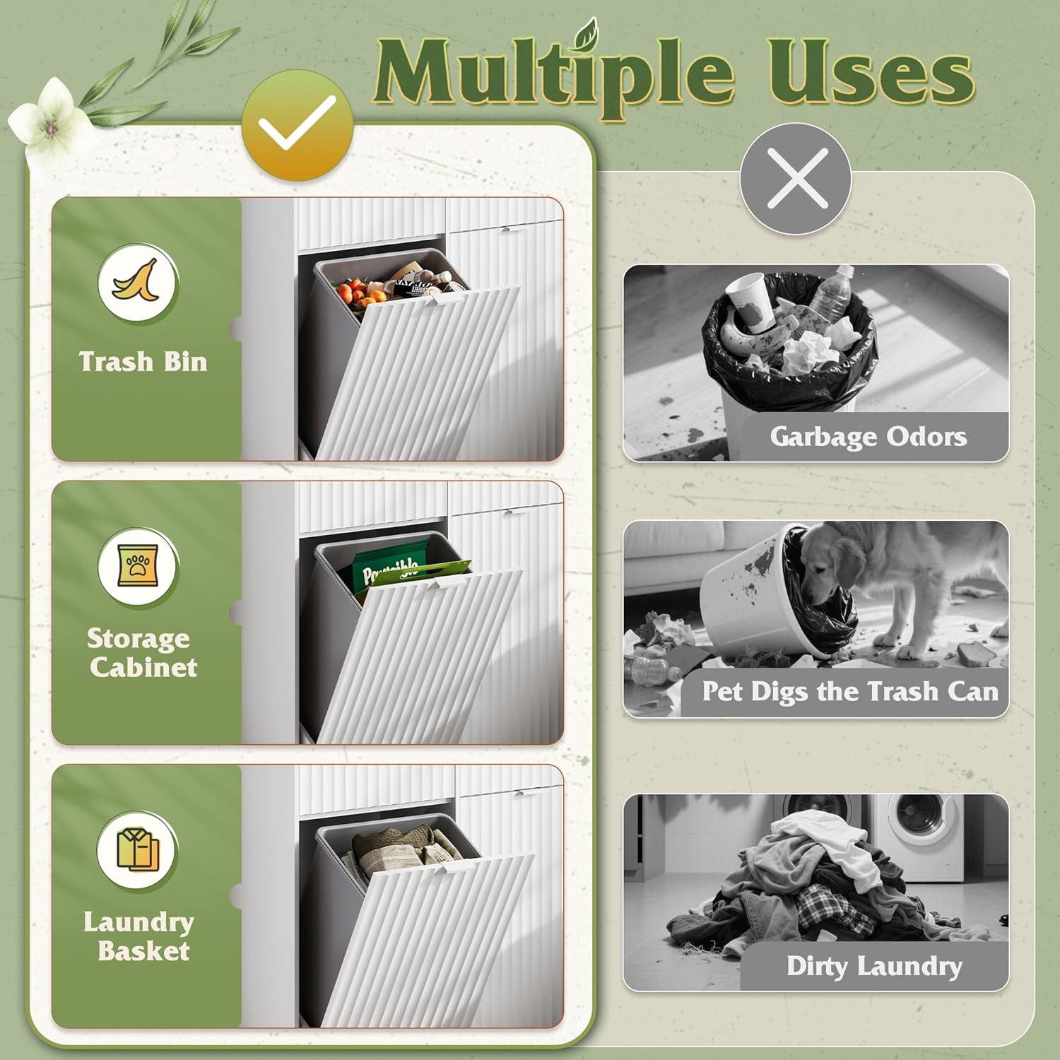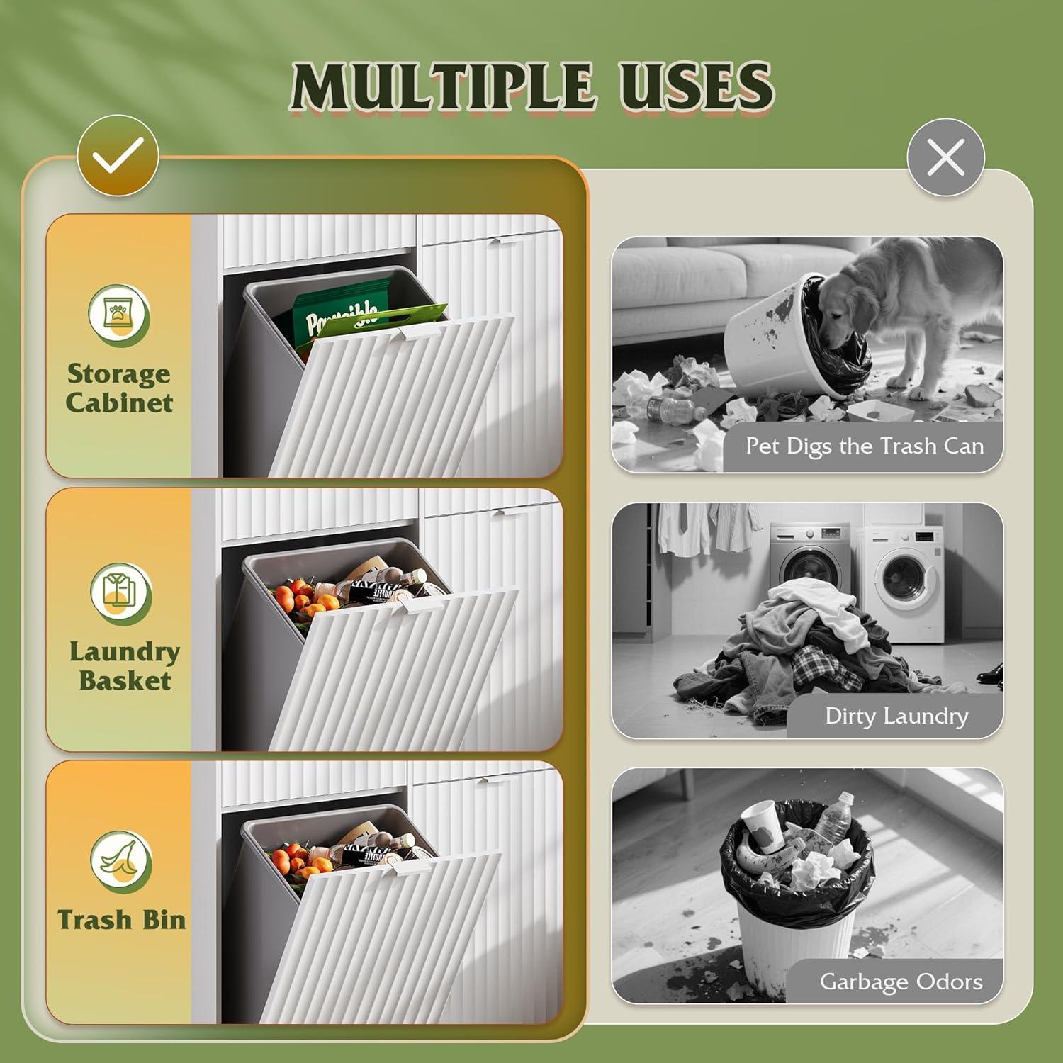 【Hidden Odor-Blocking Design】Keep your space tidy and odor-free with this hidden trash can cabinet. It conceals waste effectively, prevents pets from accessing trash, and enhances kitchen aesthetics while saving floor space.