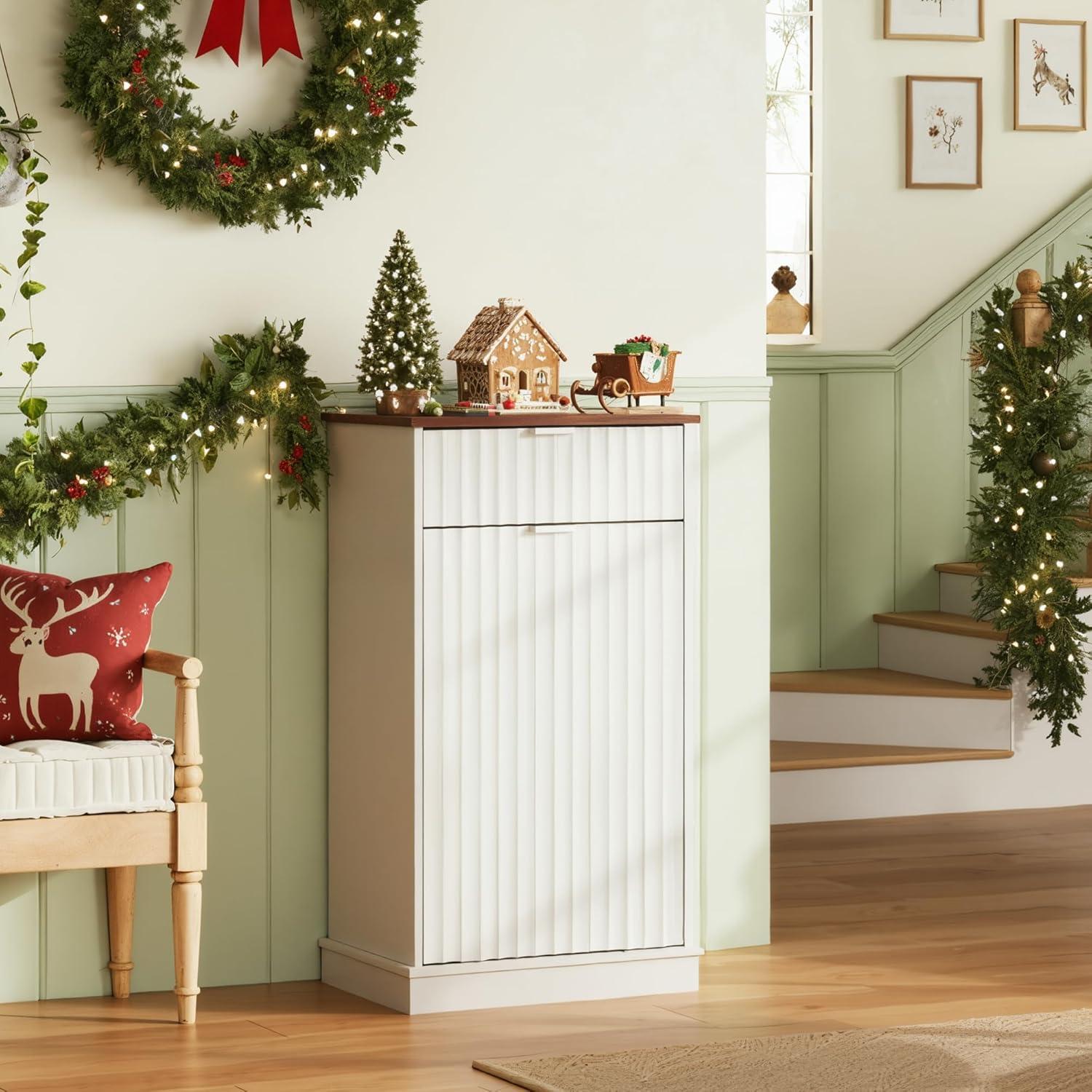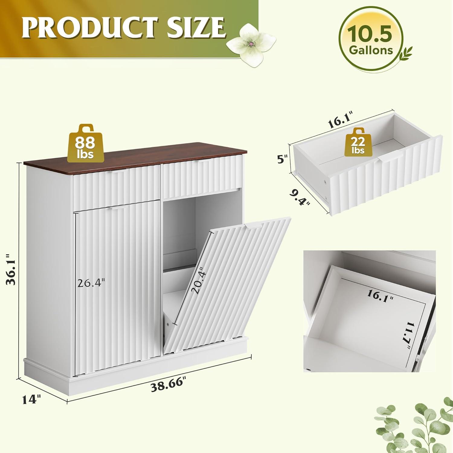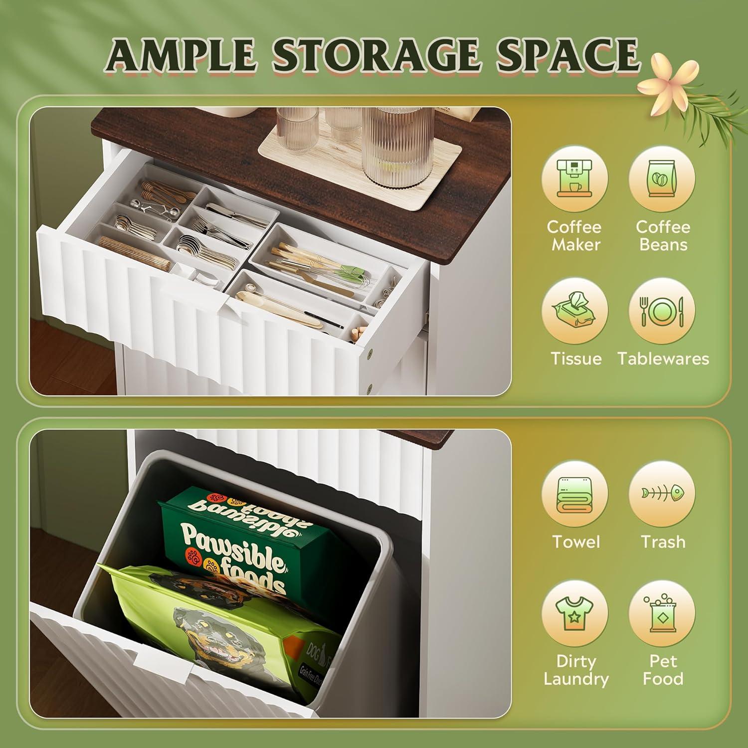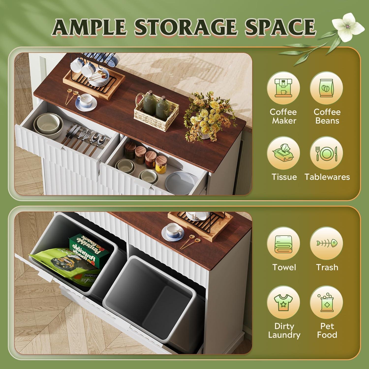 【Hidden Odor-Blocking Design】Keep your space tidy and odor-free with this hidden trash can cabinet. It conceals waste effectively, prevents pets from accessing trash, and enhances kitchen aesthetics while saving floor space.