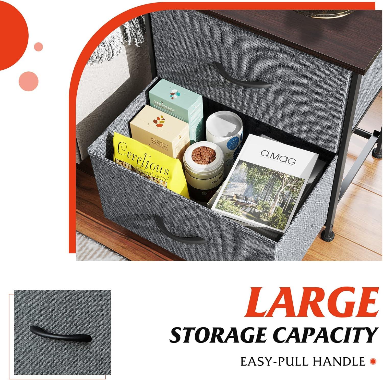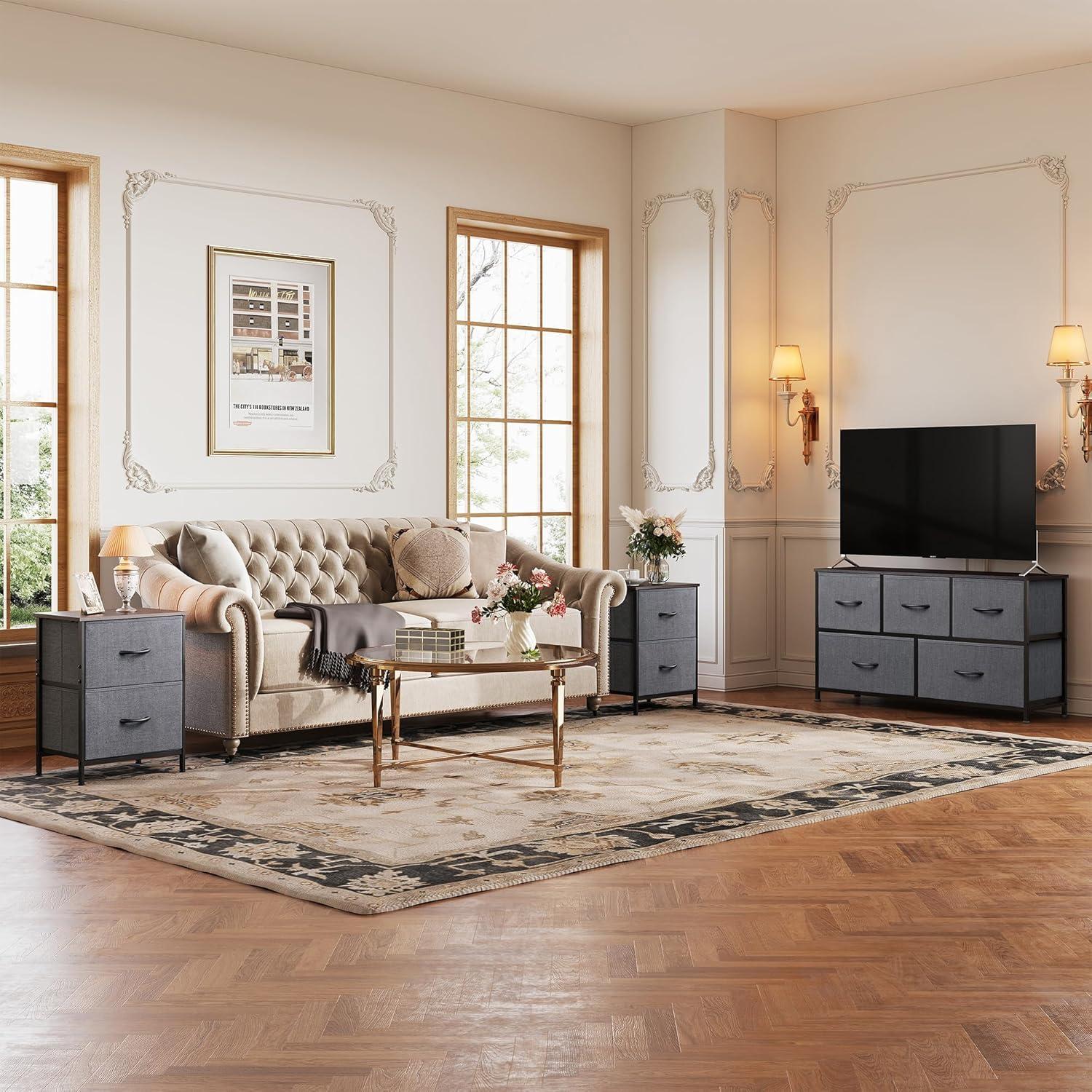 imageWLIVE 2Drawer Nightstand with 2 and 5Drawer Dresser Set Fabric Storage Tower for Bedroom Hallway Nursery Closets Tall Chest Organizer Unit with Textured Print Fabric Bins Steel Frame