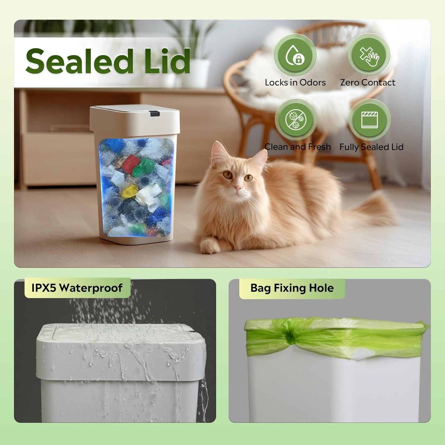 【Durable & Waterproof】Built tough with PP material, this motion sensor bathroom trash can withstands daily use (20,000+ cycles) and is waterproof. Backed by a 1-year warranty.