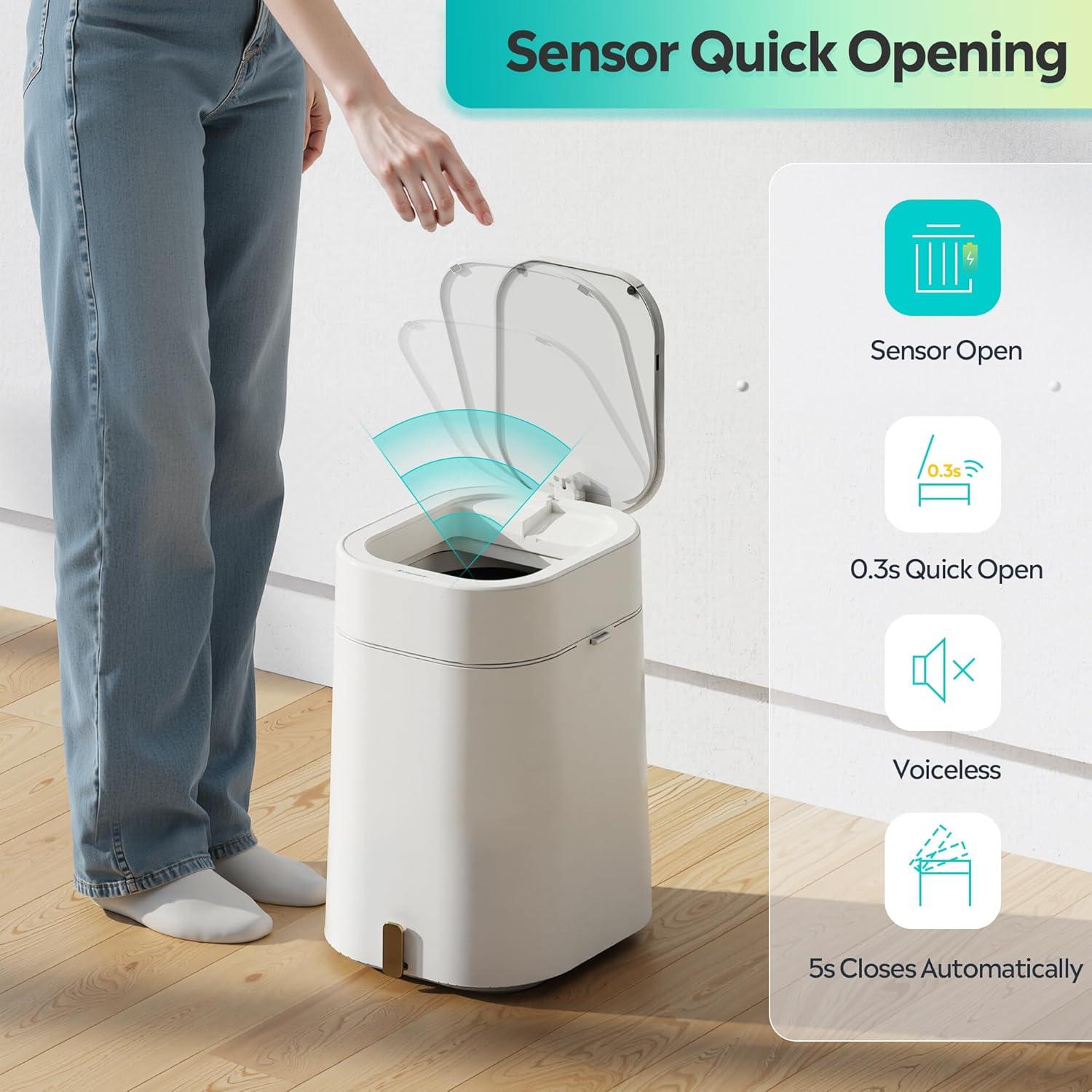 【Secure Lid & Odor Lock】The seamless, covered design of this sensor trash can locks in odors and deters kids/pets. Opens and closes quietly, can be widely used in offices, shops, study rooms, bathrooms, bedrooms, kitchens, living room or anywhere in your home.