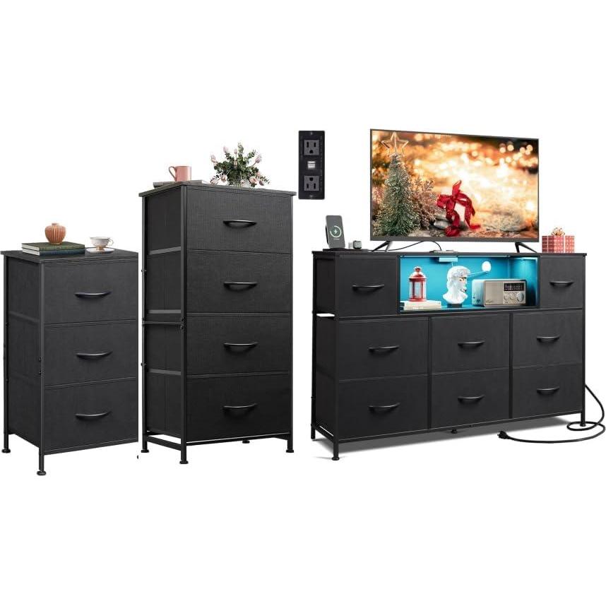 WLIVE 3 Drawer Dresser, 4 Drawer and 8 Drawer Dresser Set, Dresser for Bedroom, Closet, Hallway, Storage Dresser Organizer Unit, Dressers & Chests of Drawers, Charcoal Black