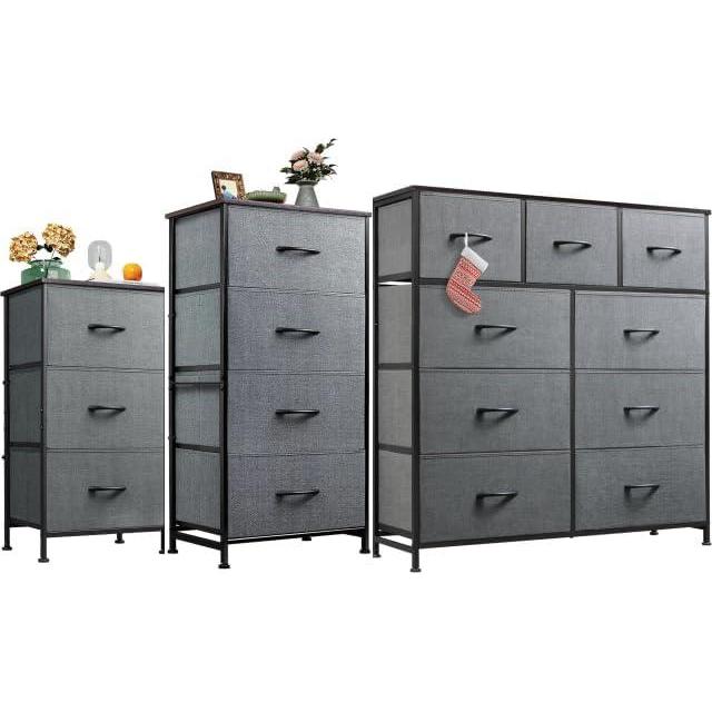 WLIVE 3 Drawer, 4 Drawer and 9 Drawer Dresser Set, Dresser for Bedroom, Closet, Hallway, Storage Organizer Unit, Dressers & Chests of Drawers, Dark Grey
