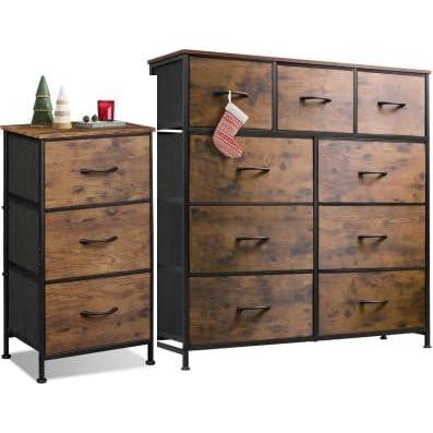 WLIVE 3 Drawer Dresser and 9 Drawer Dresser Set, Dresser for Bedroom, Closet, Hallway, Storage Dresser Organizer Unit, Dressers & Chests of Drawers with Fabric Bins, Rustic Brown Wood Grain Print