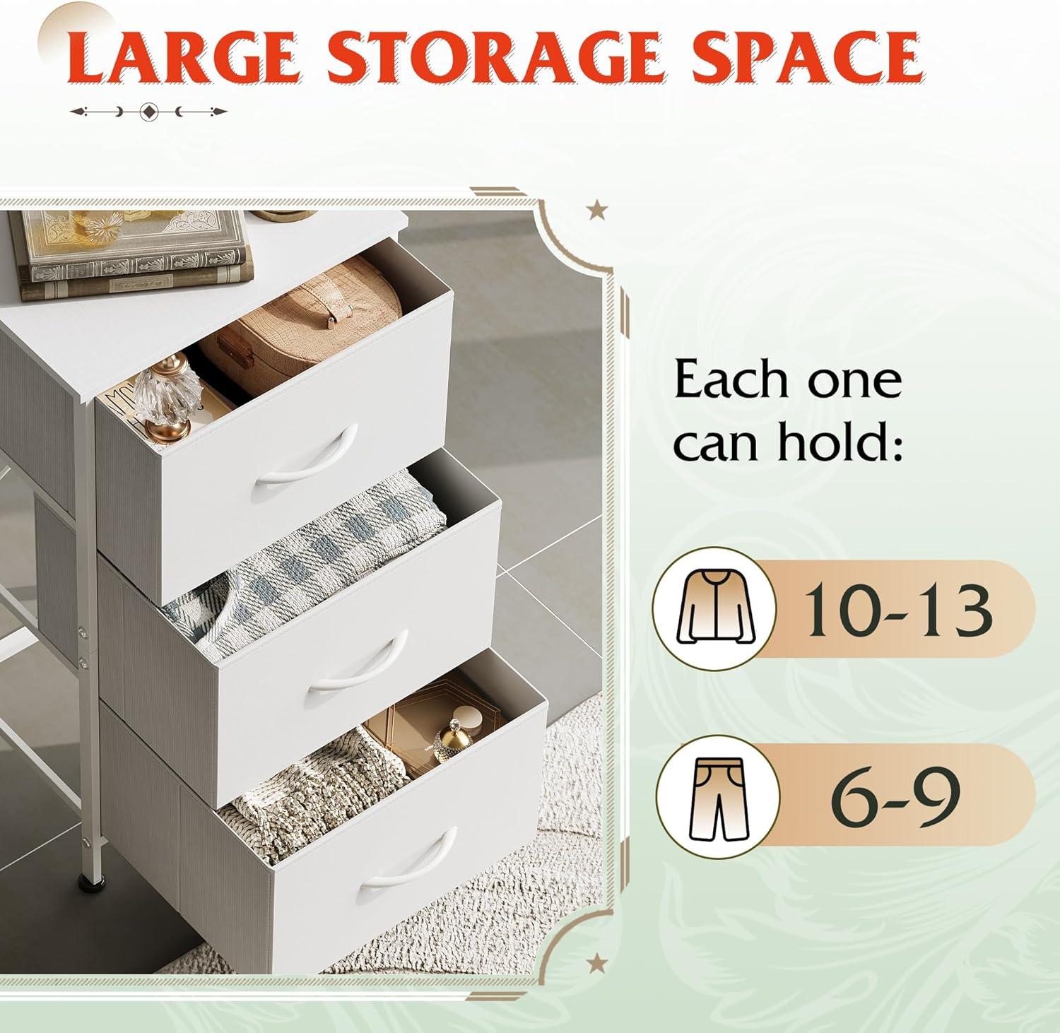Roomy Storage Space: The dresser features foldable deep drawers, which provide endless organizational possibilities. Wooden top is ideal for lamps, clocks, glasses and other daily essentials, keeping them in your reach.