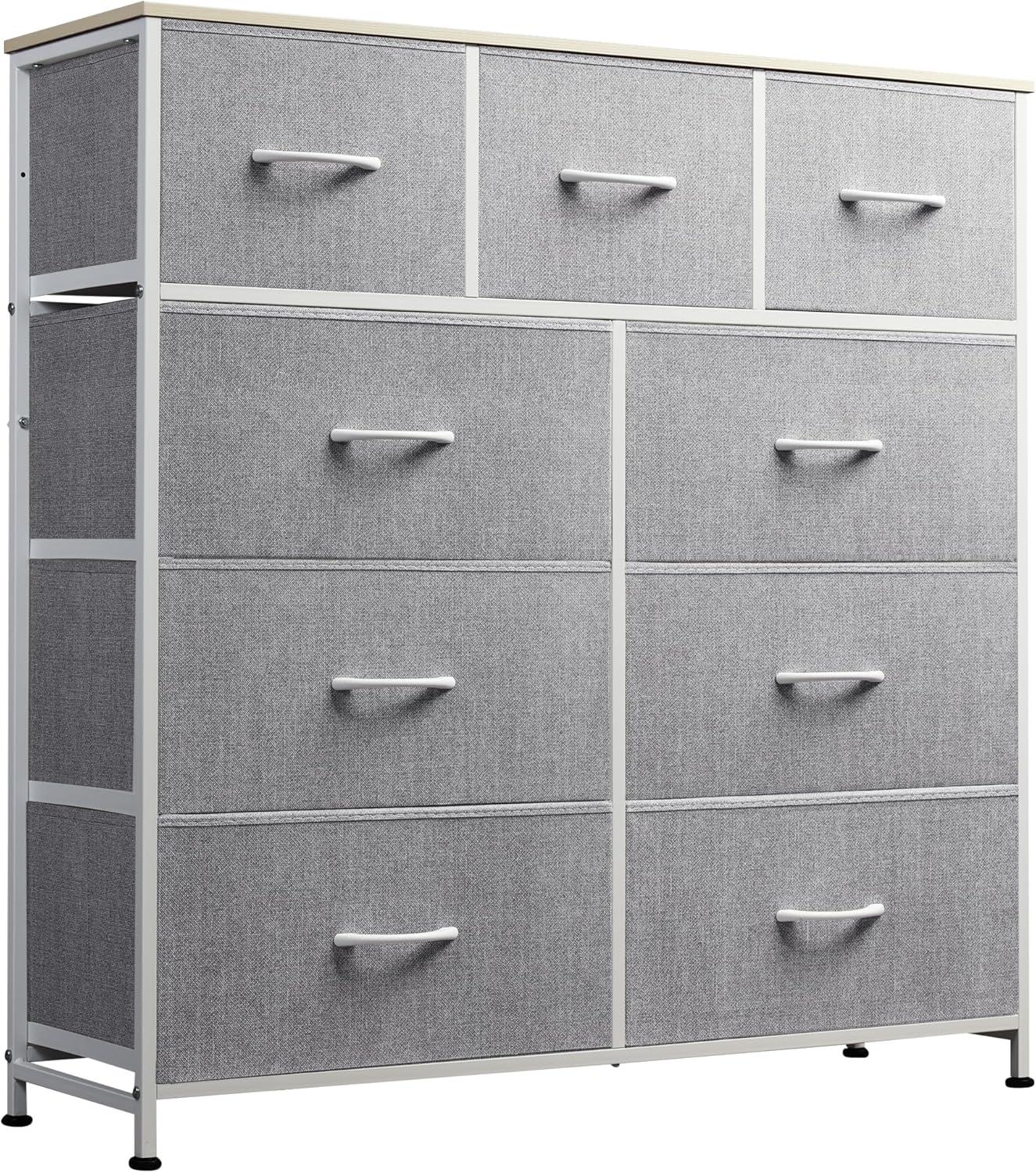 Roomy Storage Space: The dresser features foldable deep drawers, which provide endless organizational possibilities. Wooden top is ideal for lamps, clocks, glasses and other daily essentials, keeping them in your reach.