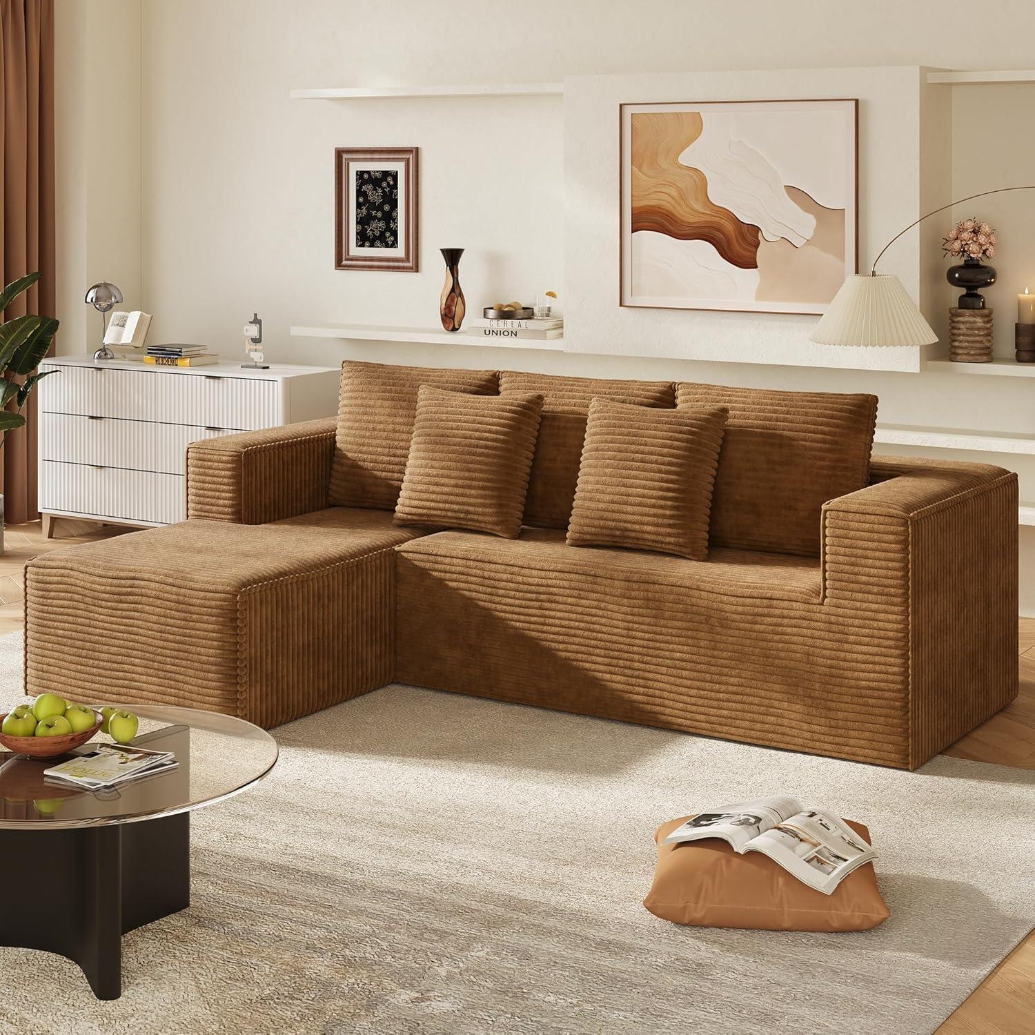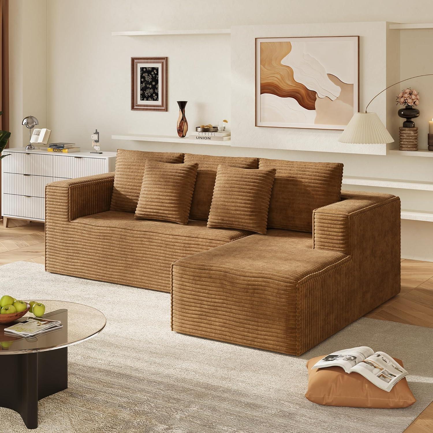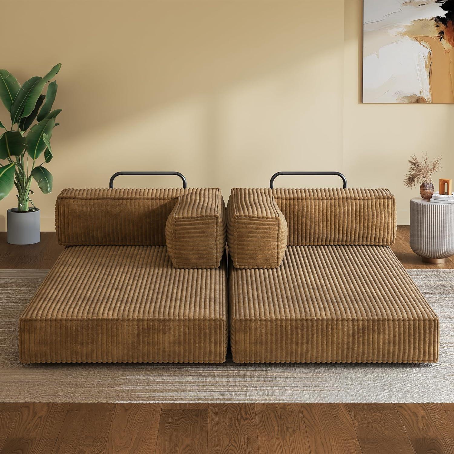WLIVE 35'' Boneless Chair for Living Room, Bean Bag Chair for Adults, with Pillows, Comfortable Floor Chair, Beige, Single(Brown)