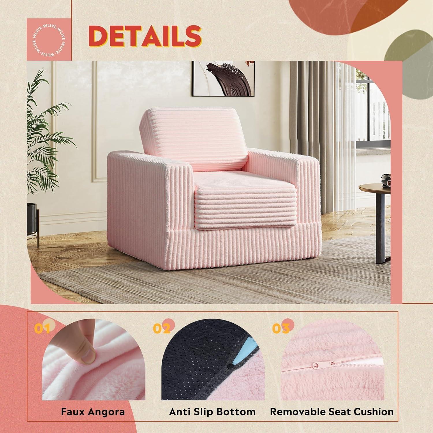 WLIVE 35'' Boneless Chair for Living Room, Bean Bag Chair for Adults, with Pillows, Comfortable Floor Chair, Beige, Single(Pink)