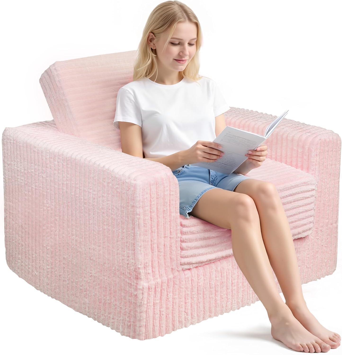 WLIVE 35” Boneless Chair for Living Room, Bean Bag Chair for Adults, with Pillows, Comfortable Floor Chair, Beige, Single(Pink)