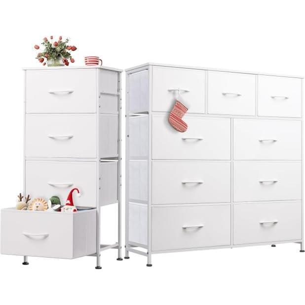 WLIVE 4 Drawer Dresser and 9 Drawer Dresser Set, Dresser for Bedroom, Closet, Hallway, Storage Dresser Organizer Unit, Dressers & Chests of Drawers with Fabric Bins