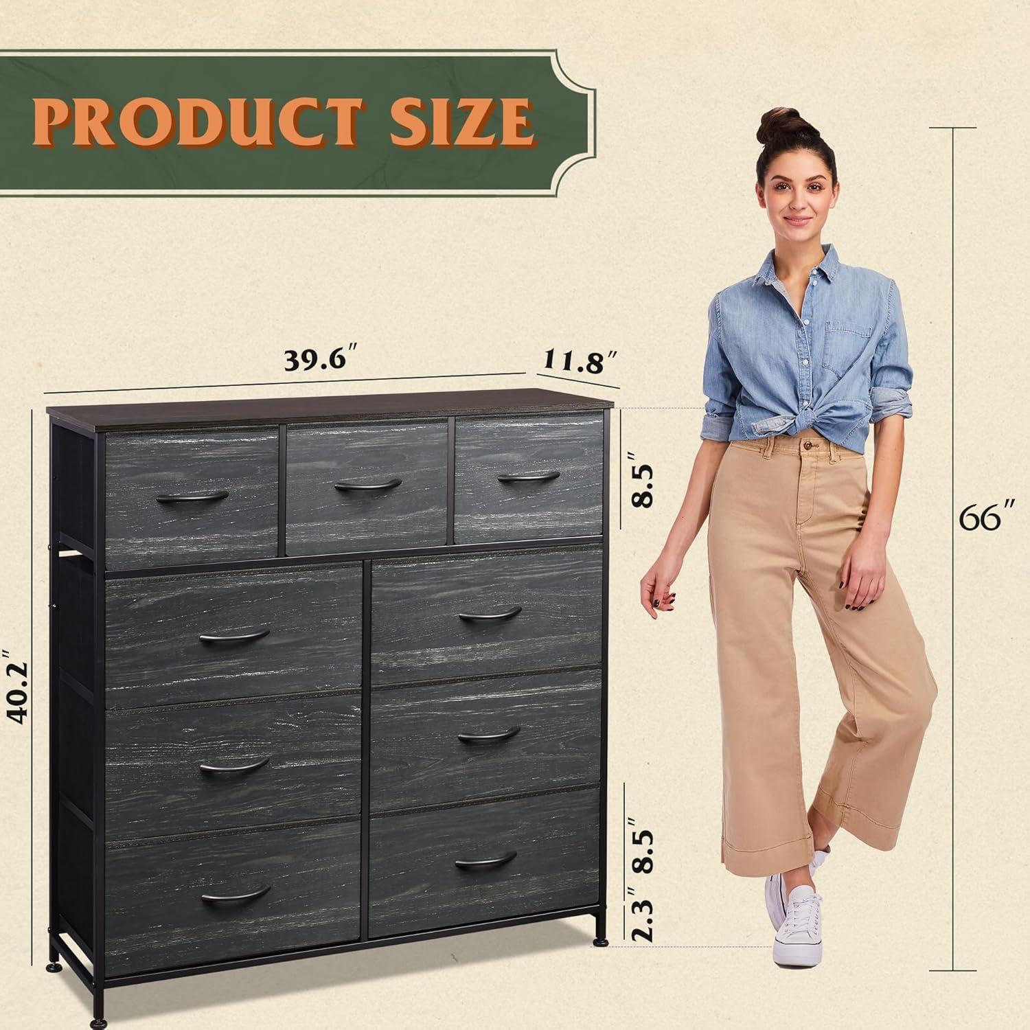 Roomy Storage Space: The dresser features foldable deep drawers, which provide endless organizational possibilities. Wooden top is ideal for lamps, clocks, glasses and other daily essentials, keeping them in your reach.