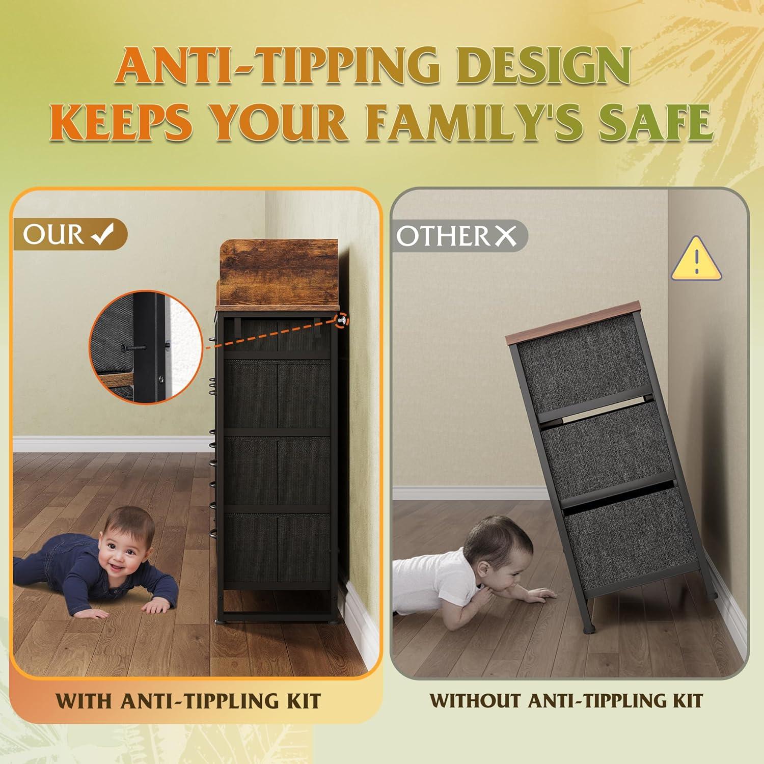 【✨ Stable Structure Safety Assured】Our storage drawer unit is designed with 15mm thickened metal steel frame with cross support rods for durability. The storage organizer equipped with anti-tilt device, which can easily fix the cabinet to the wall, ensuring the safety of you, your family and pets, and enjoying a convenient life!