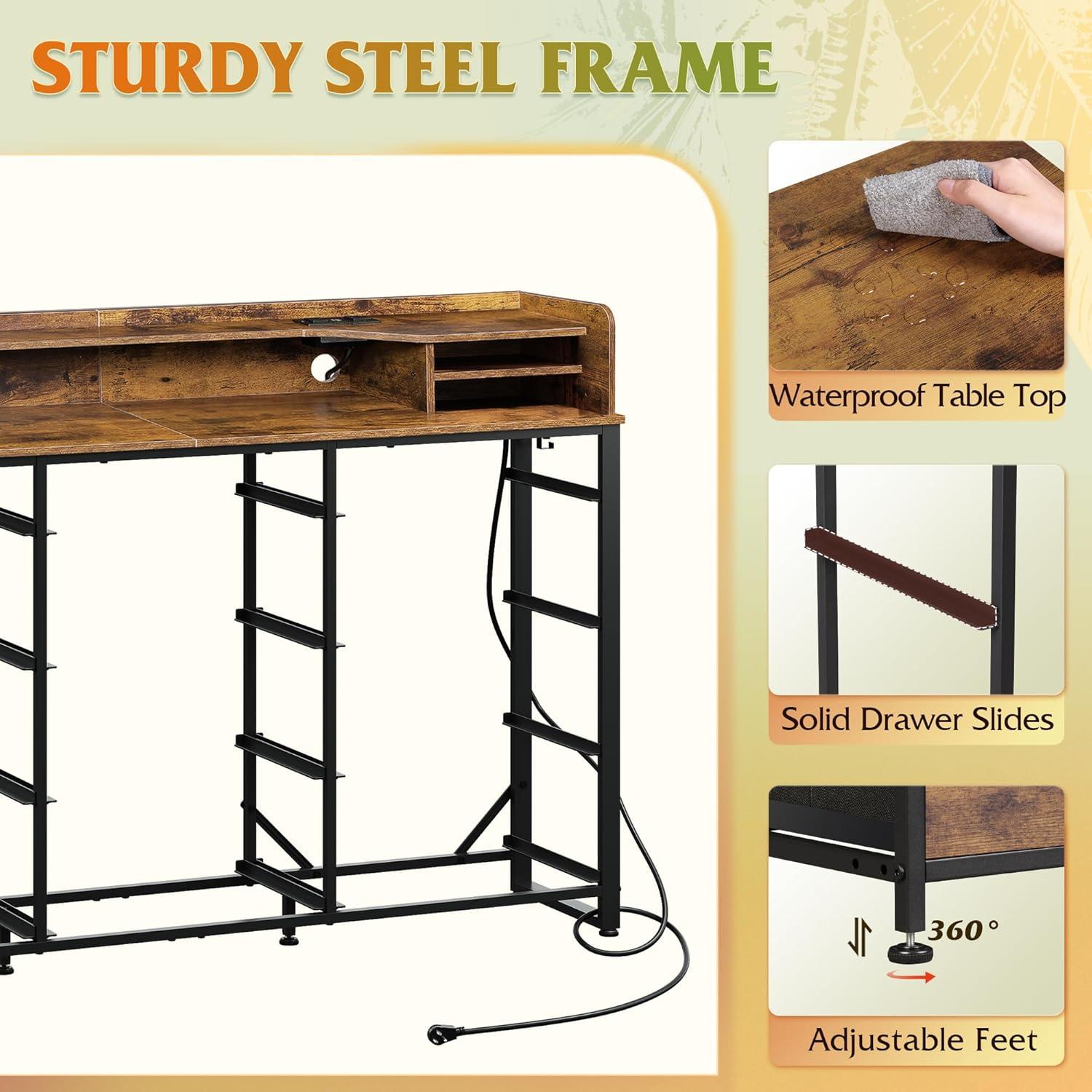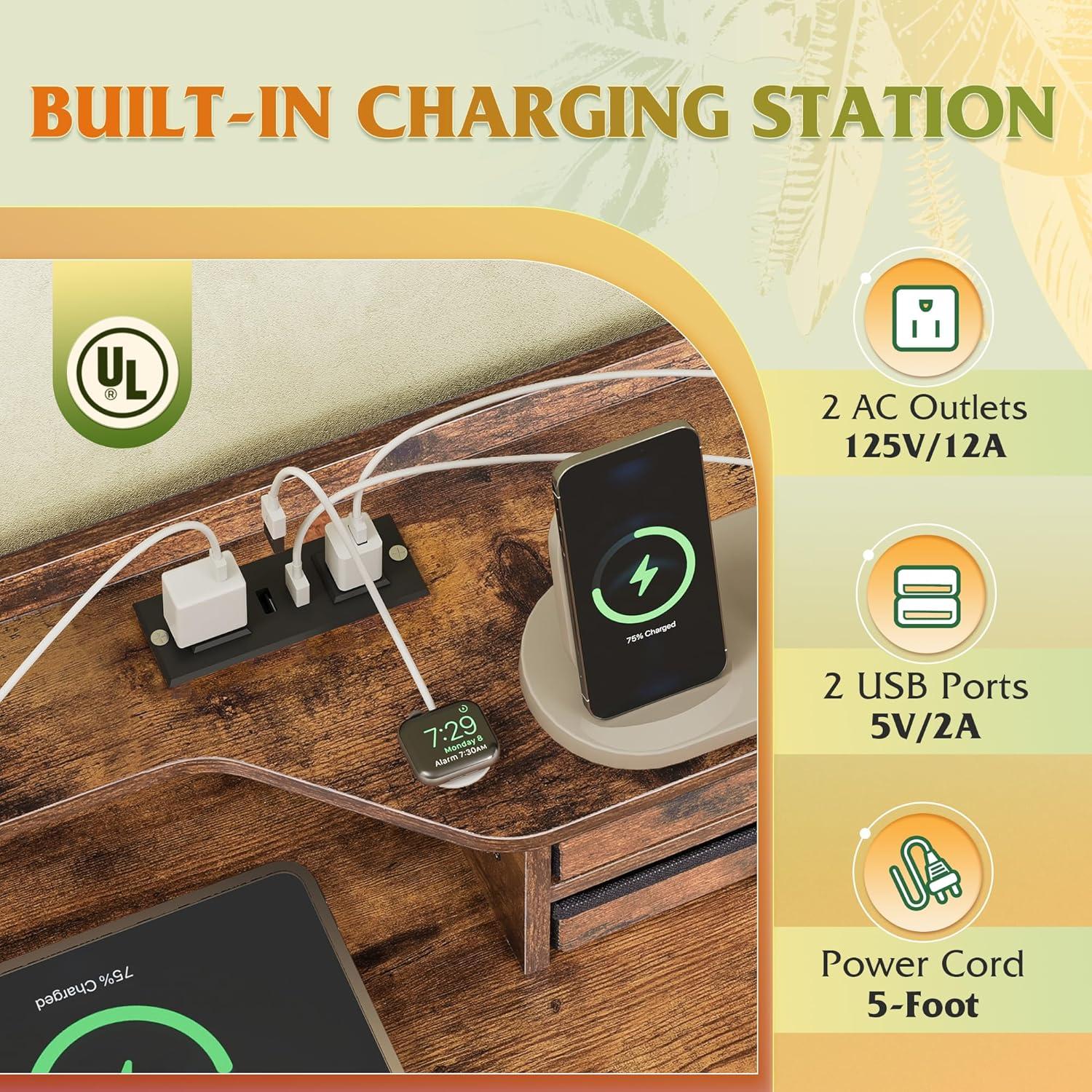 【✨ With Power Outlets】Say goodbye to messy wires! This storage drawer is equipped with 2 AC sockets +2 USB ports, 1.5m flexible cable length, hair dryer mobile phone can be done, instant increase desktop cleanliness by 40%, through UL/ETL certification, electricity safety!