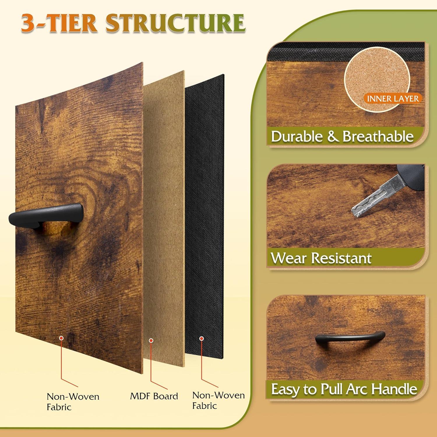 【✨ Durable Quality Material】The drawer surface is composed of three layers of high-quality fiberboard, easy-to-clean PVC and breathable non-woven fabric, the woodtop is made of P2 grade artificial wood, scratch resistant and easy to clean, the material process and safety are strictly tested by EPA&SGS, health and environmental protection, excellent quality for you and your family to create a peaceful life!