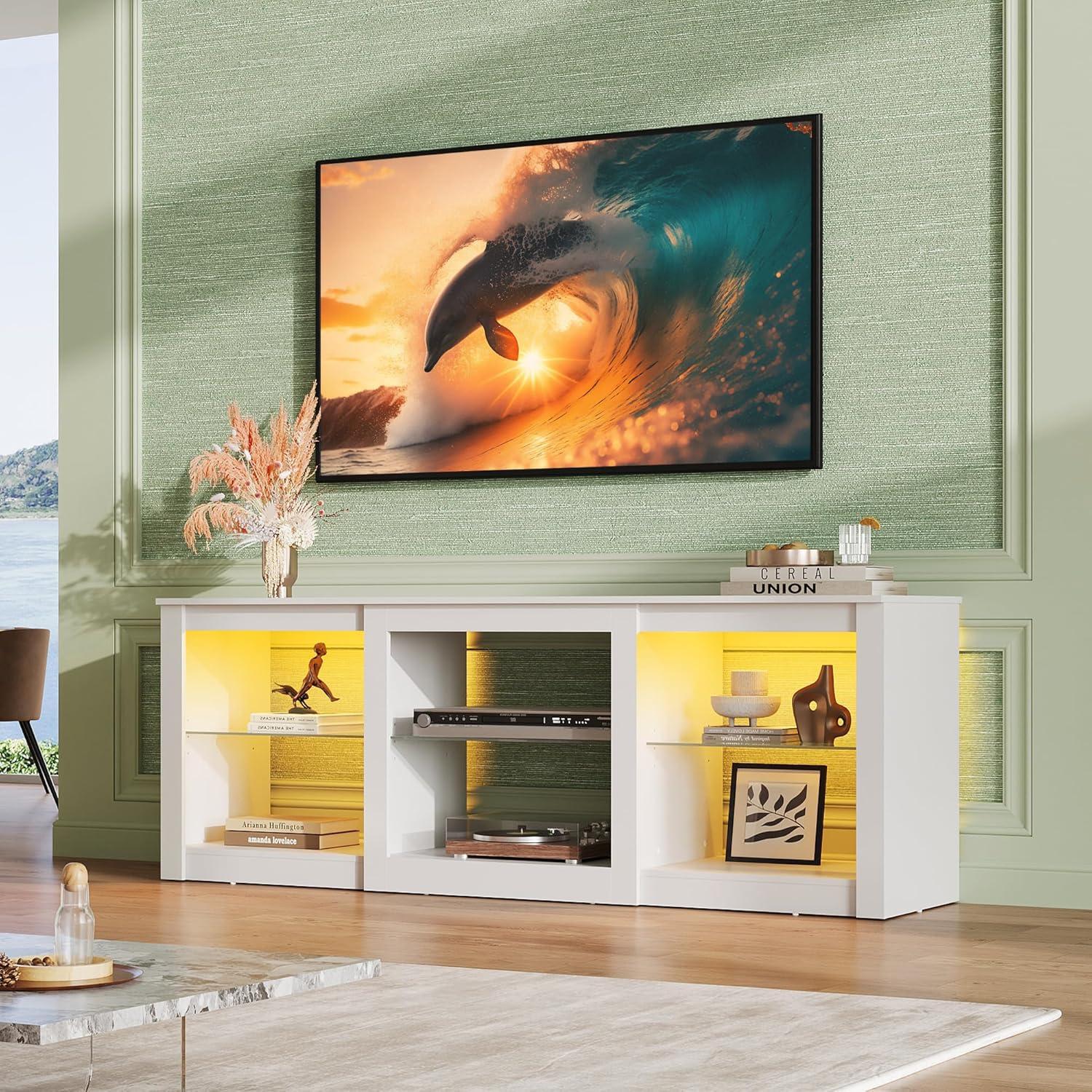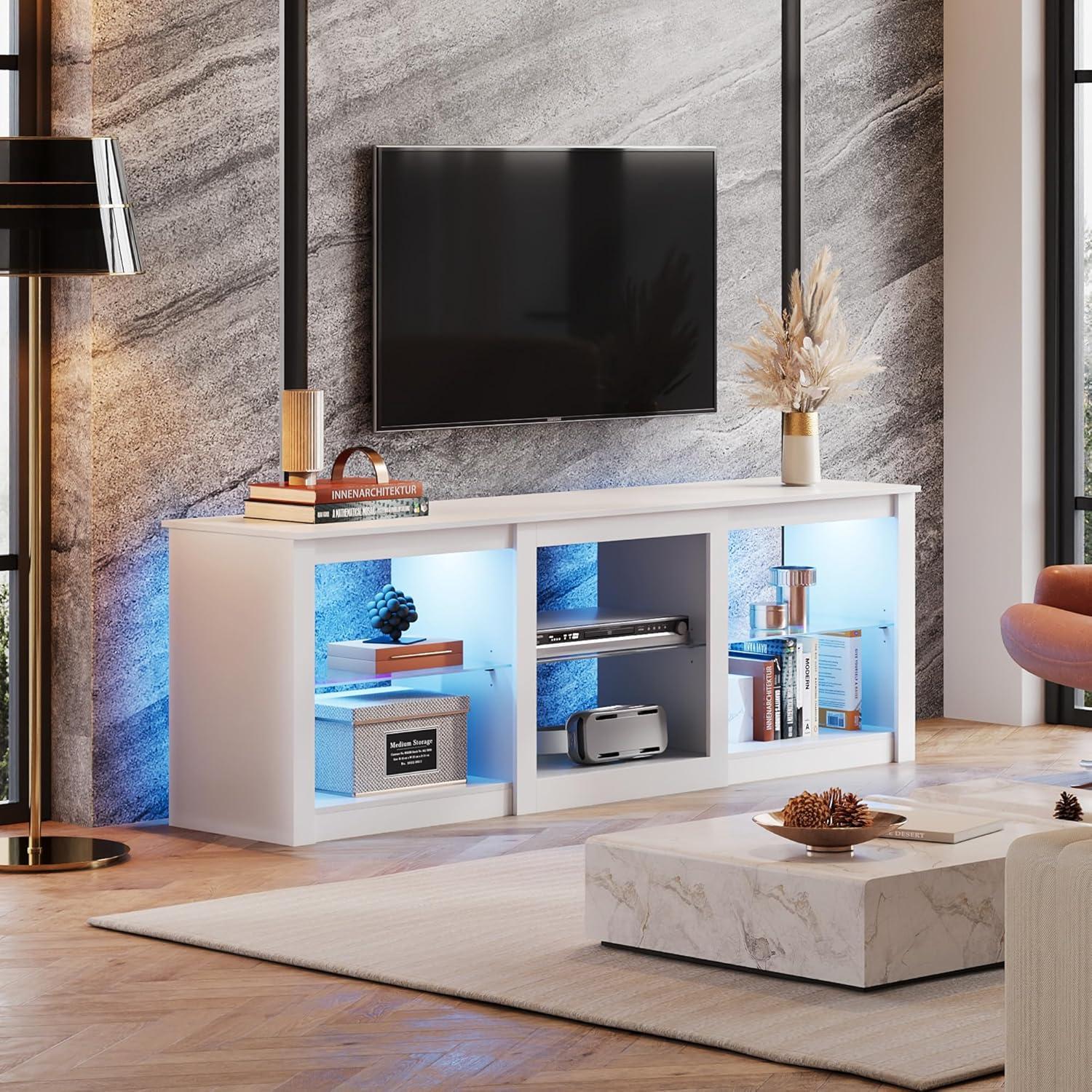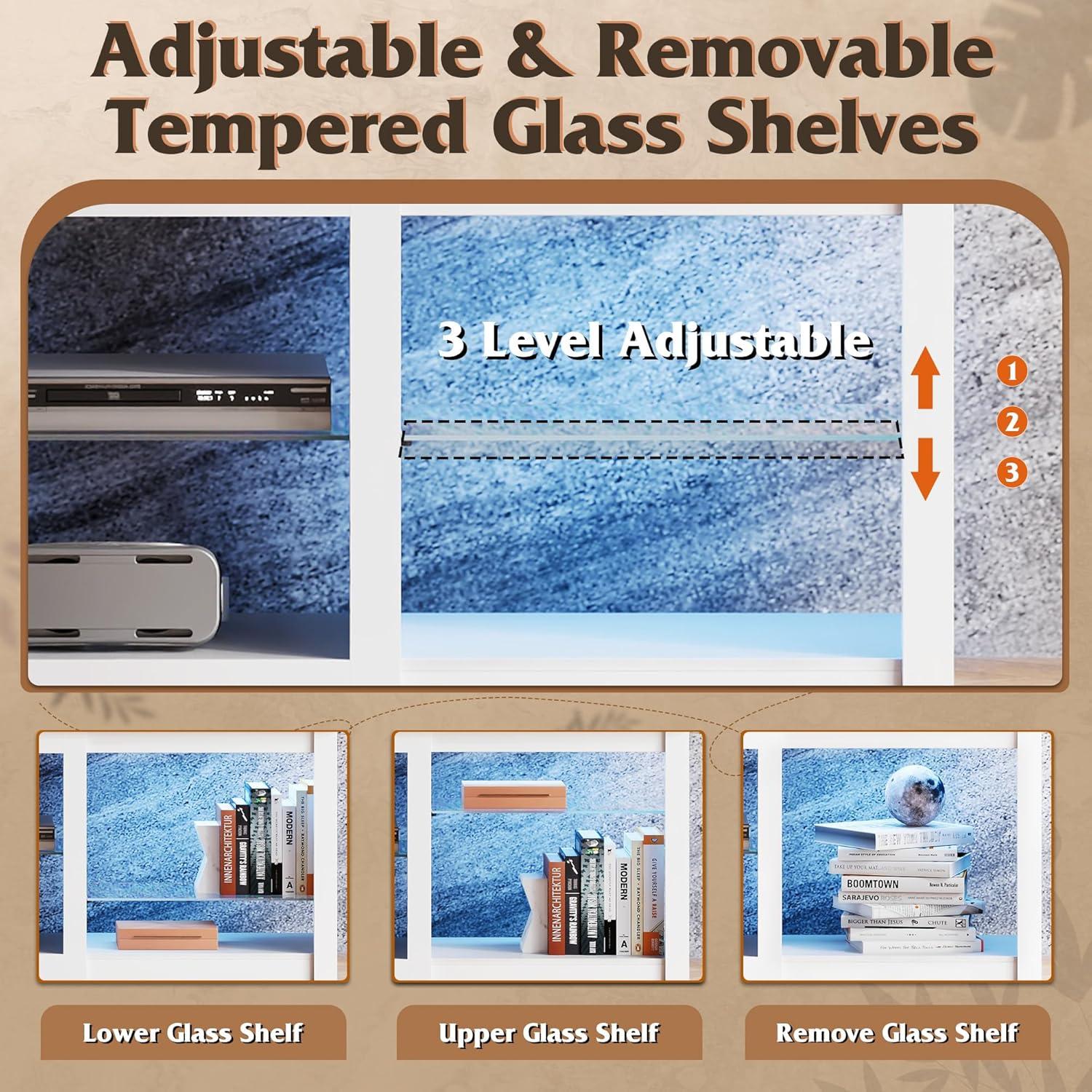 ✅【Personalized Storage – Adjustable Shelves】This versatile 58-inch TV console features open storage space and adjustable shelves to meet your diverse storage needs. With a multi-compartment design, it can neatly accommodate TV boxes, media devices, DVDs, Xbox, remote controls, and game consoles.