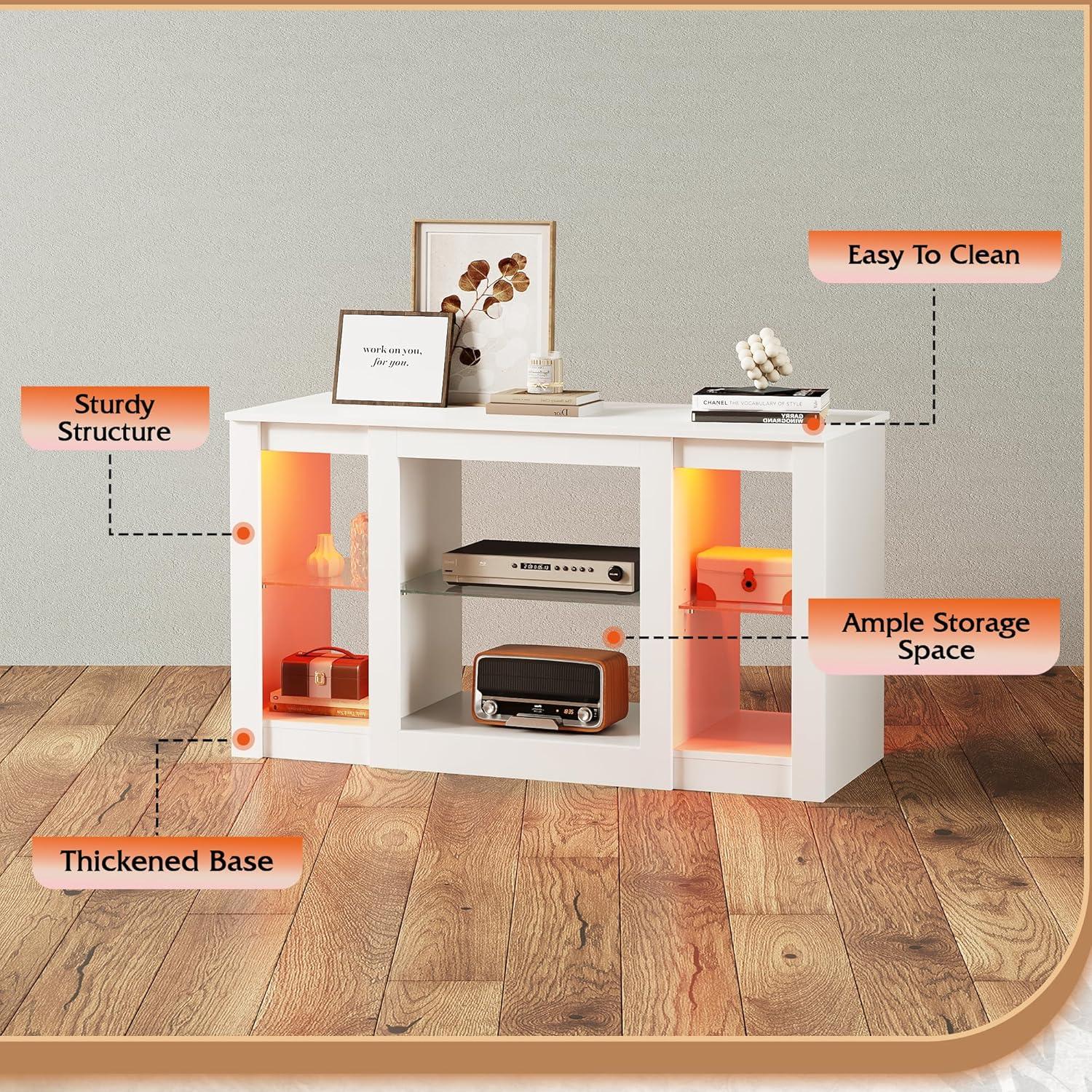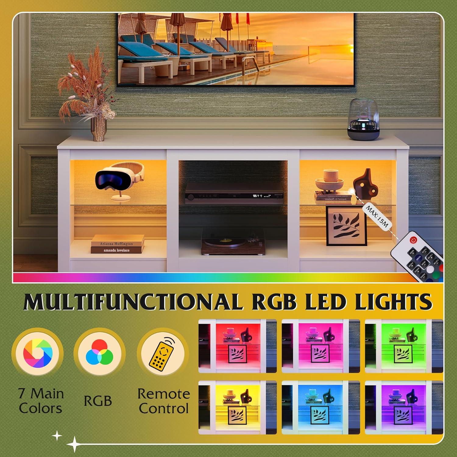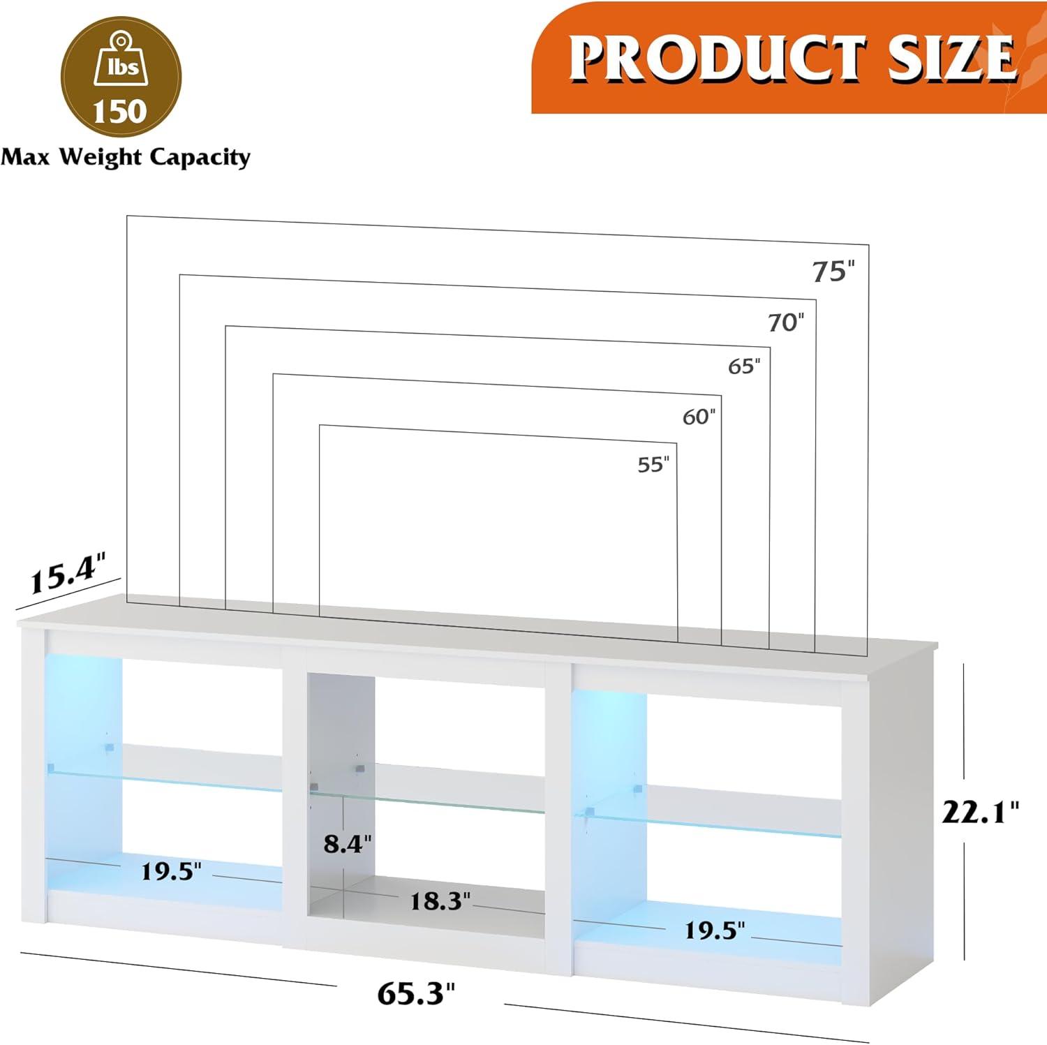 ✅【Customizable LED Mood Lighting】The tv stand for bedroom customizes the diverse viewing atmosphere with remote-controlled RGB lights, whether it's a cozy movie night or an intense gaming session, adding a touch of excitement and entertainment to your viewing experience.