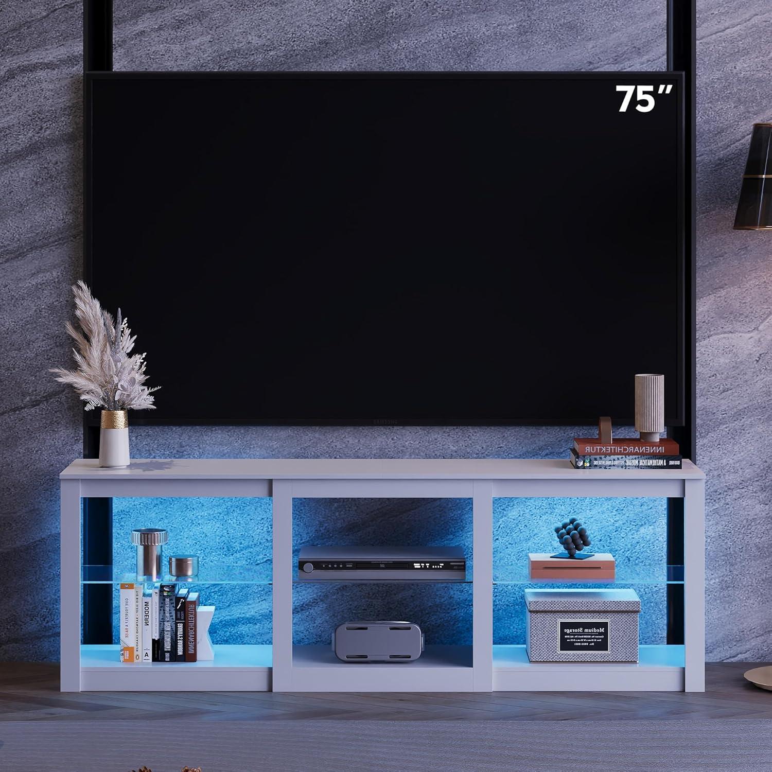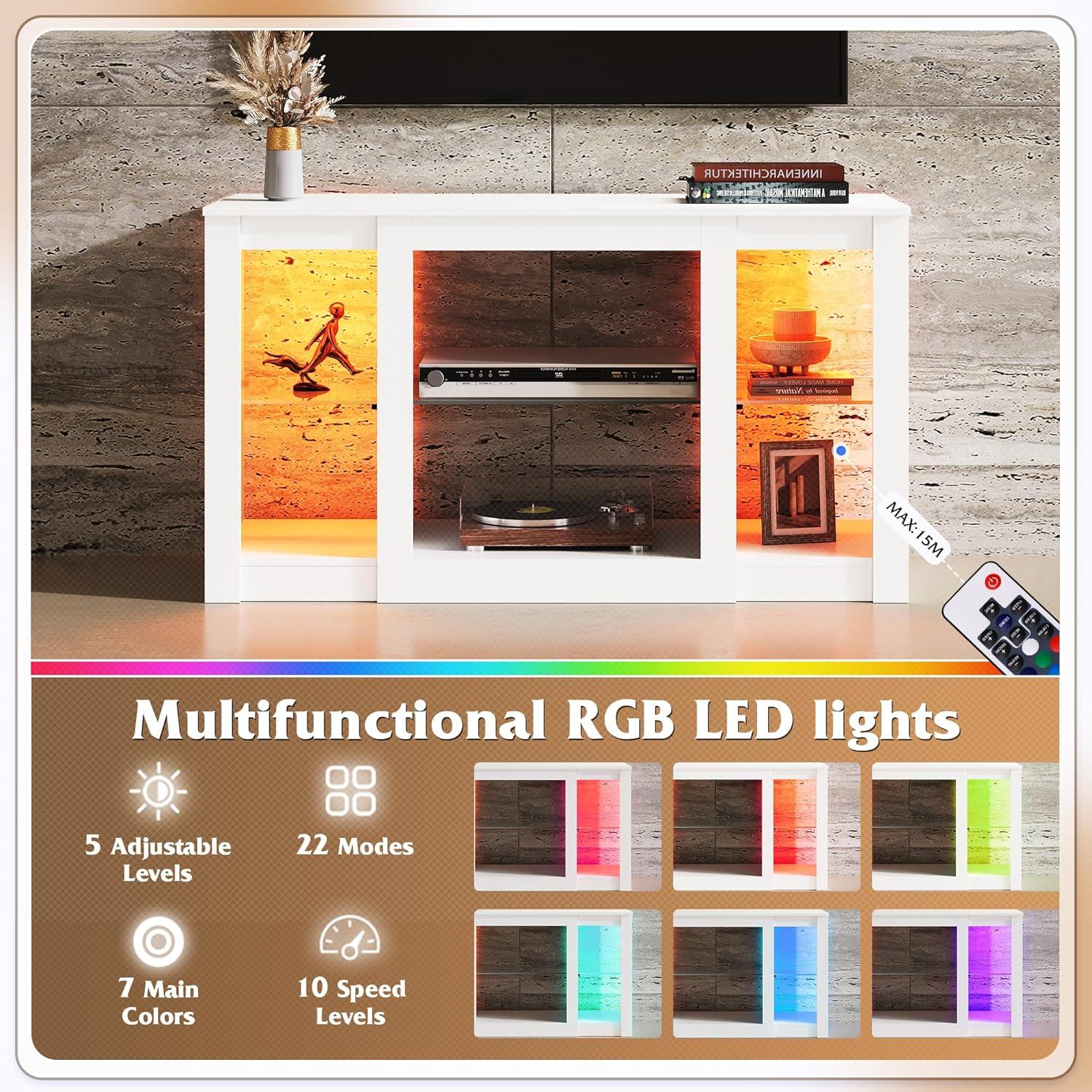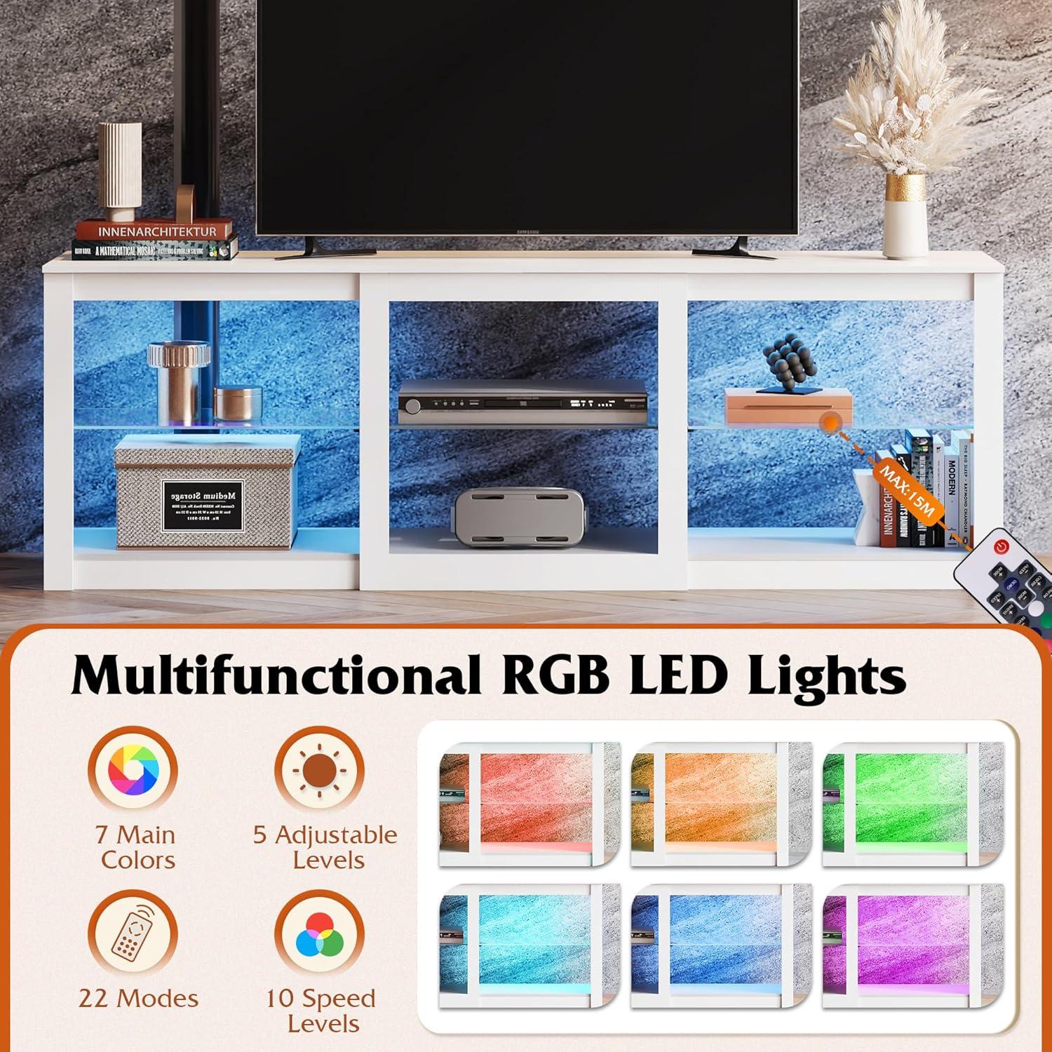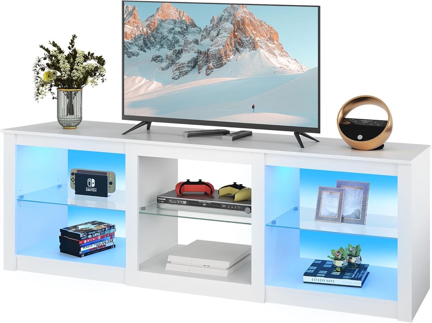 ✅【Customizable LED Mood Lighting】The tv stand for bedroom customizes the diverse viewing atmosphere with remote-controlled RGB lights, whether it's a cozy movie night or an intense gaming session, adding a touch of excitement and entertainment to your viewing experience.
