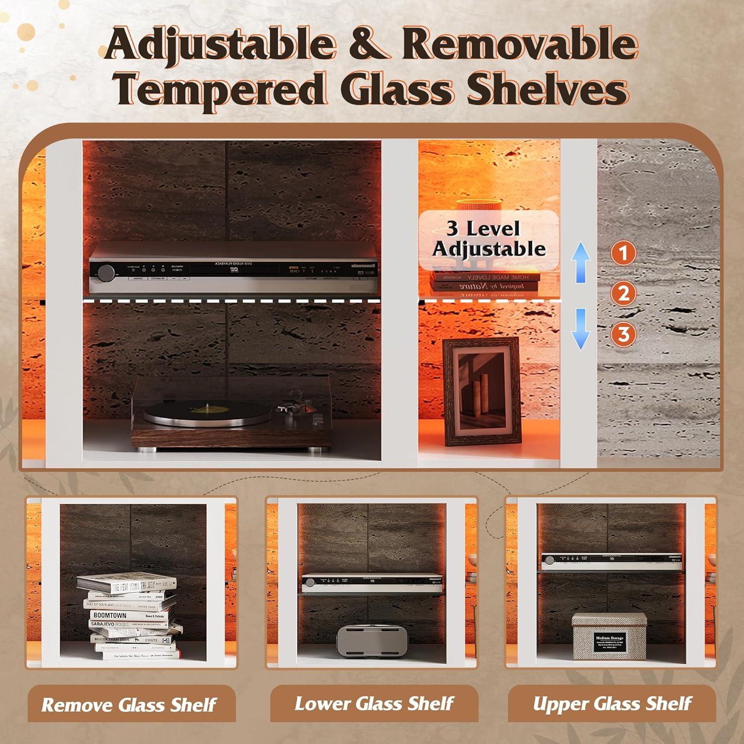 ✅【Sturdy and Stylish Design】Durable tempered glass shelves and sturdy legs ensure stability. The top shelf has a strong 150-pound load capacity to ensure you have firm support, its open design makes cleaning easy, and the environmentally friendly materials ensure a sustainable choice for your home