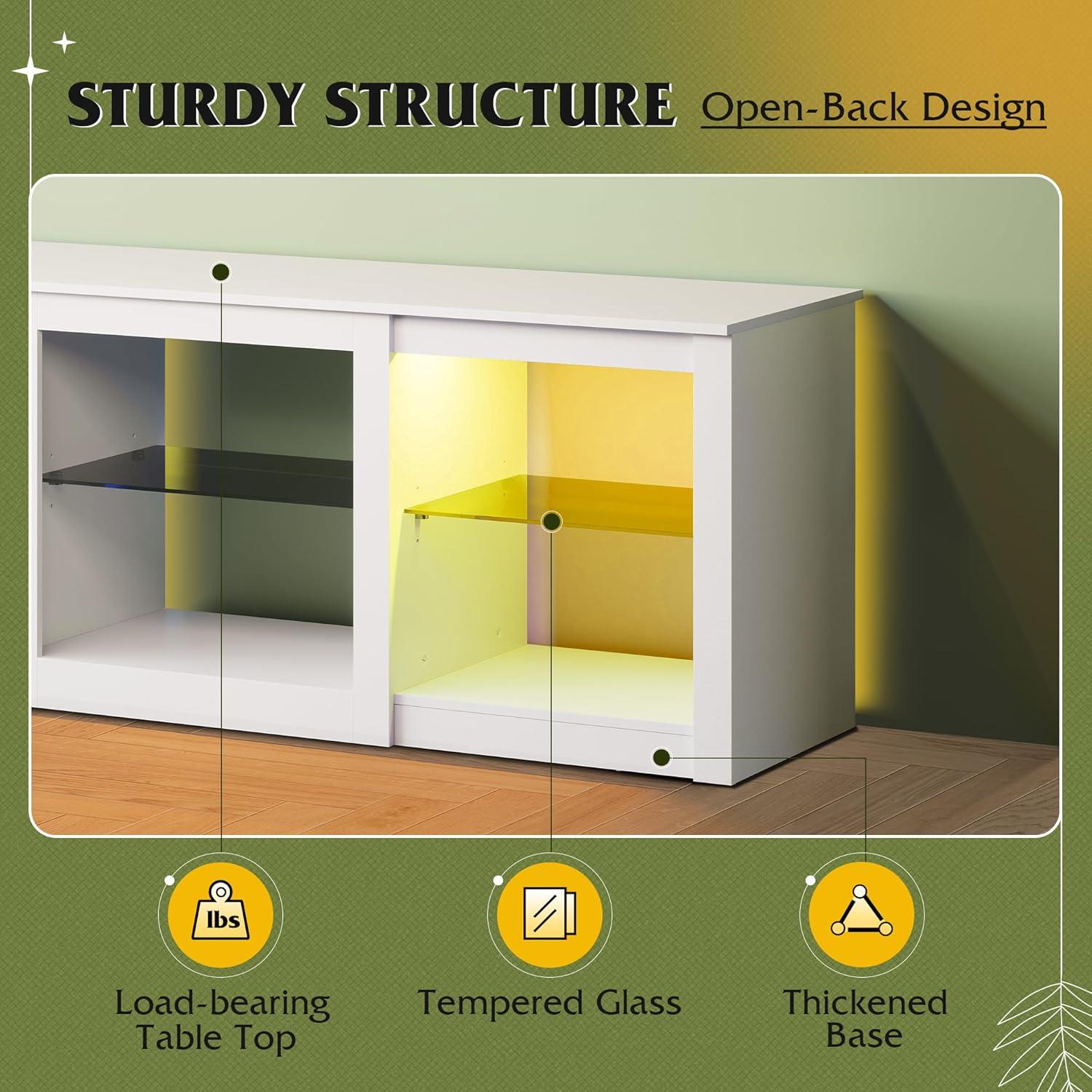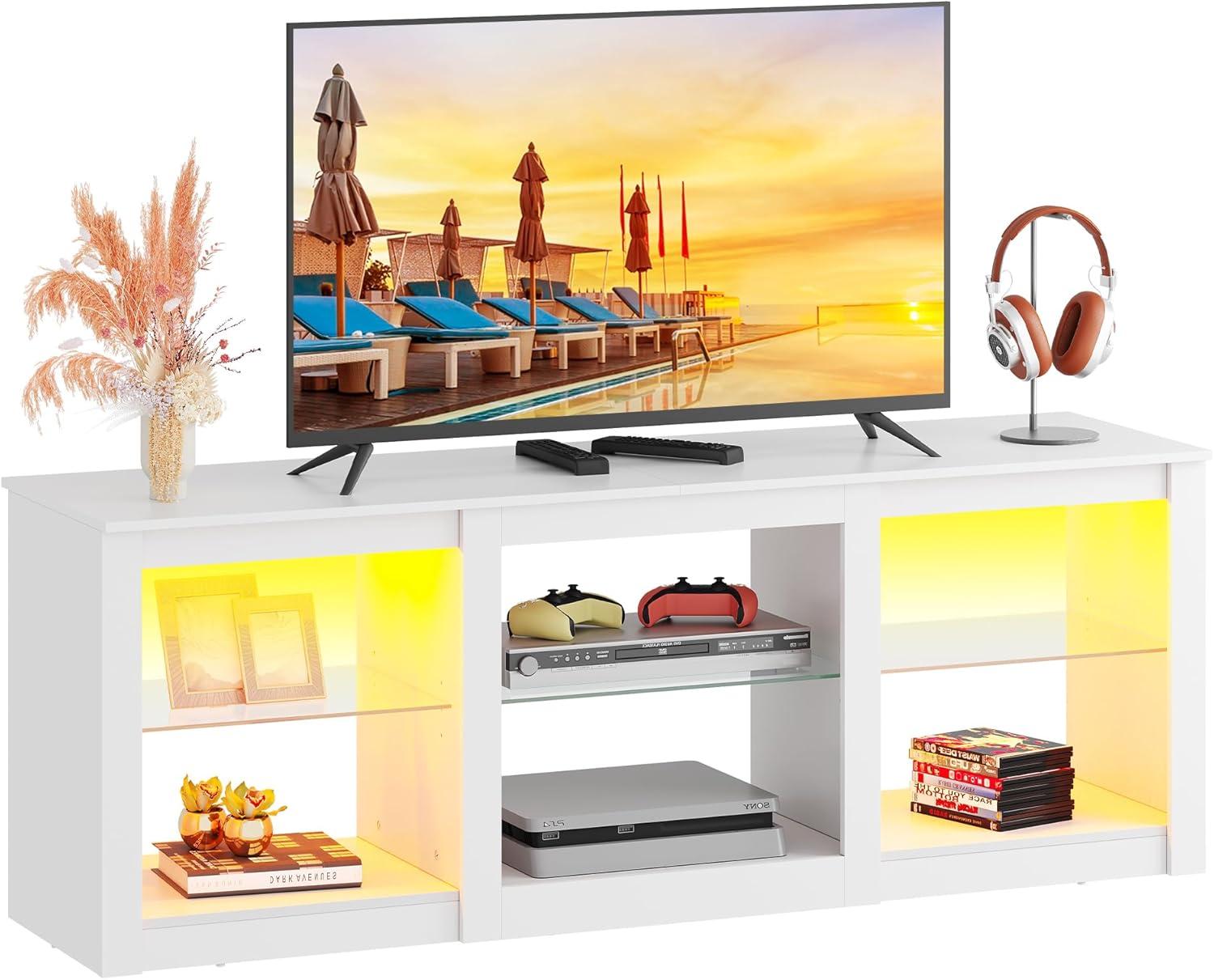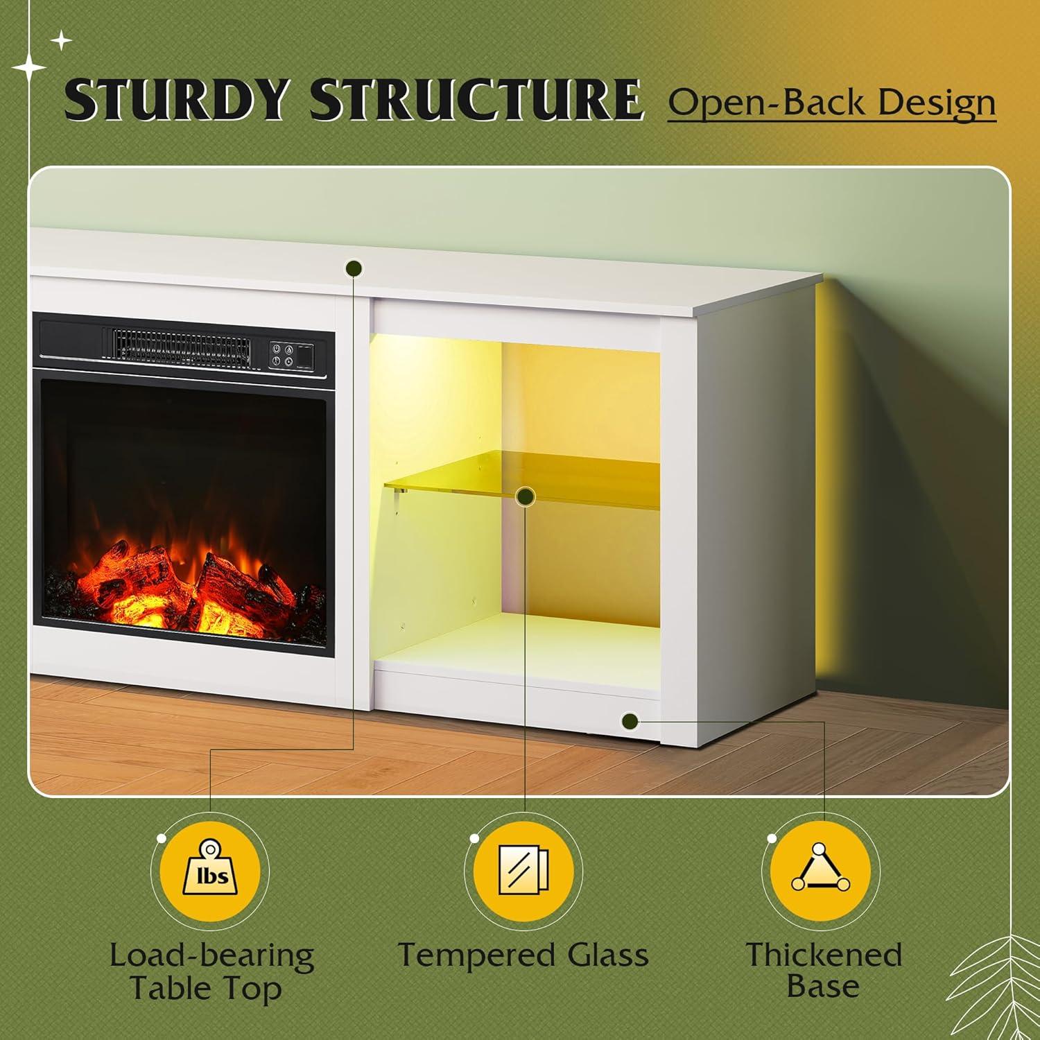 WLIVE 58 Inches Fireplace TV Stand with LED Lights, Modern Entertainment Center with 18'' Electric Fireplace & Adjustable Glass Shelves, Sturdy Media Console for Living Room, Bedroom,Gaming (Black)(White)