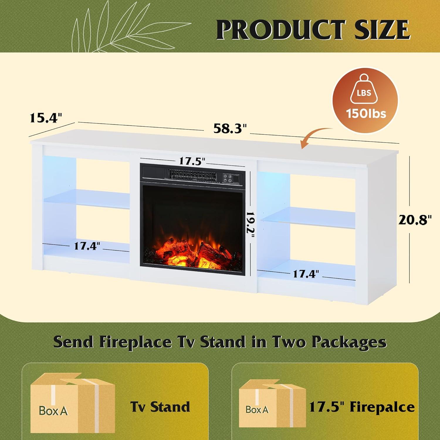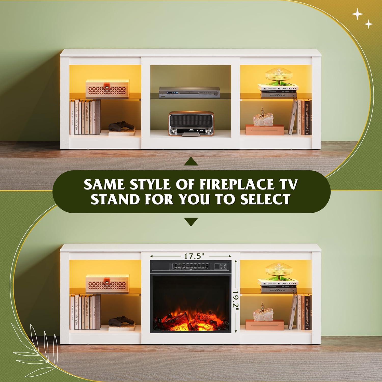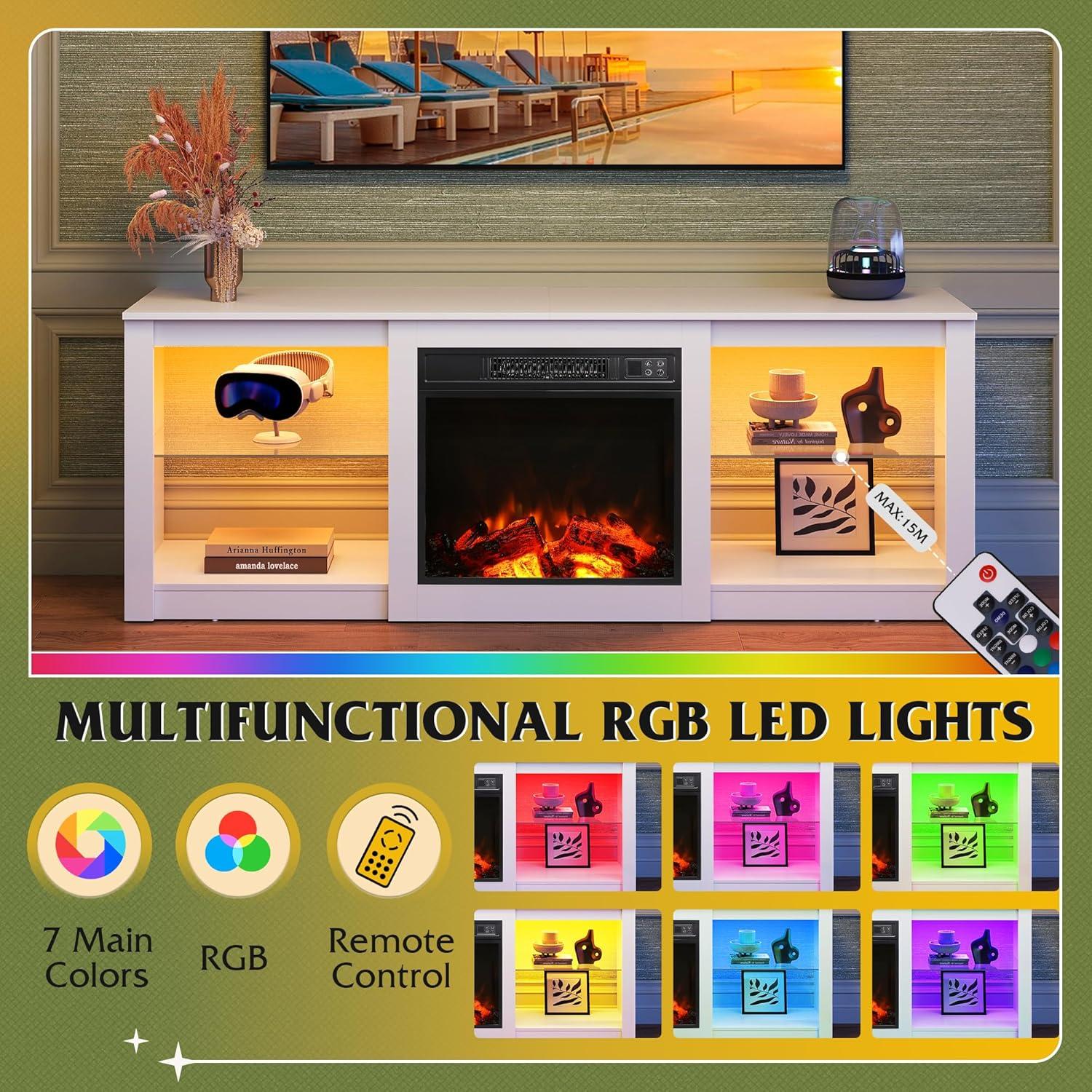 WLIVE 58 Inches Fireplace TV Stand with LED Lights, Modern Entertainment Center with 18” Electric Fireplace & Adjustable Glass Shelves, Sturdy Media Console for Living Room, Bedroom,Gaming (Black)(White)