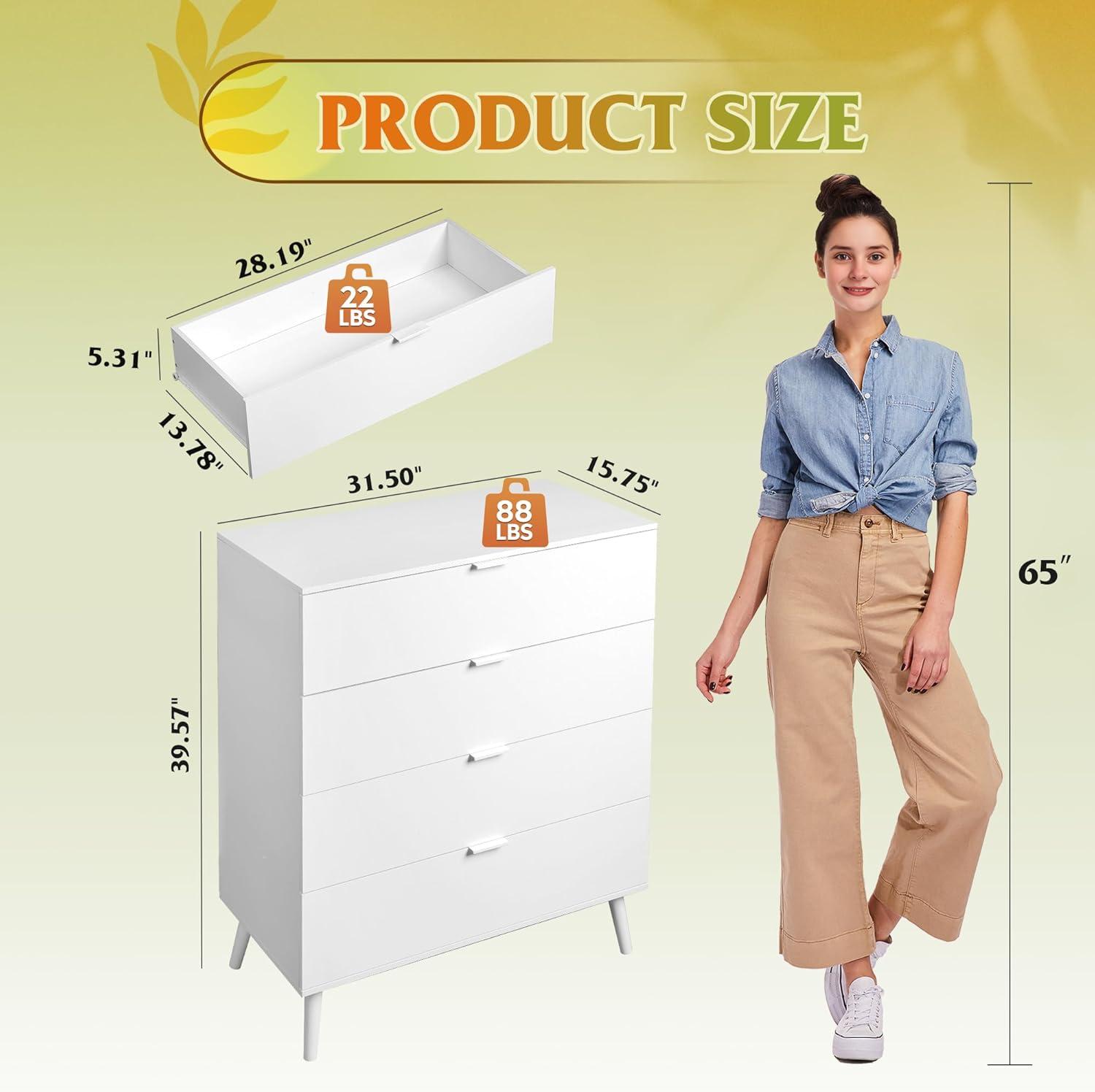 WLIVE White Wood Dresser for Bedroom with 4 Drawers, Tall Chest of Drawers with Sturdy Metal Frame for Living Room, Hallway, Closet(Black)