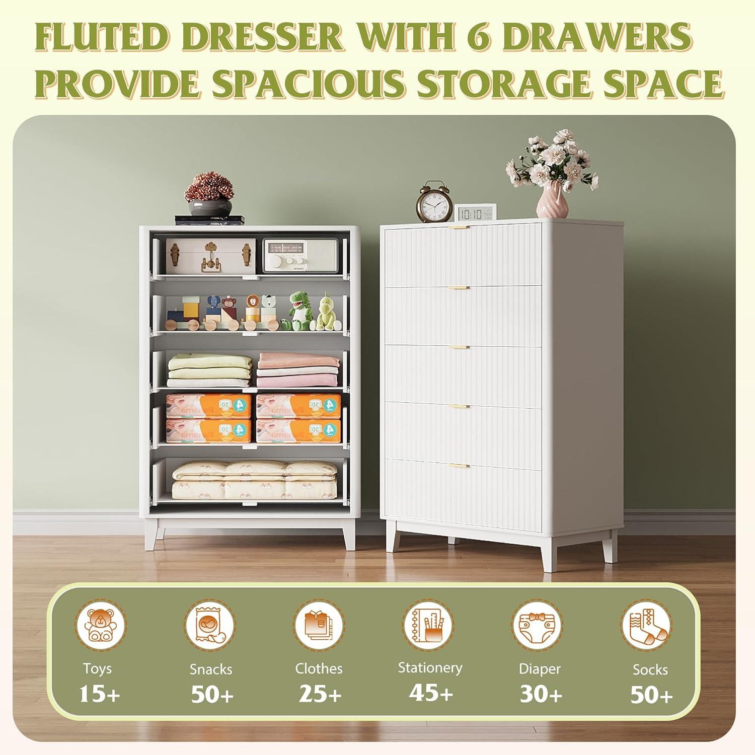 【Modern 6 Drawers Dresser】This wooden dresser meets storage needs and is classic and atmospheric. Exquisite handle design, convenient and practical. It can be used for bedroom clothing organizer, entryway table, decorative storage for living room, making your room look cleaner and brighter.