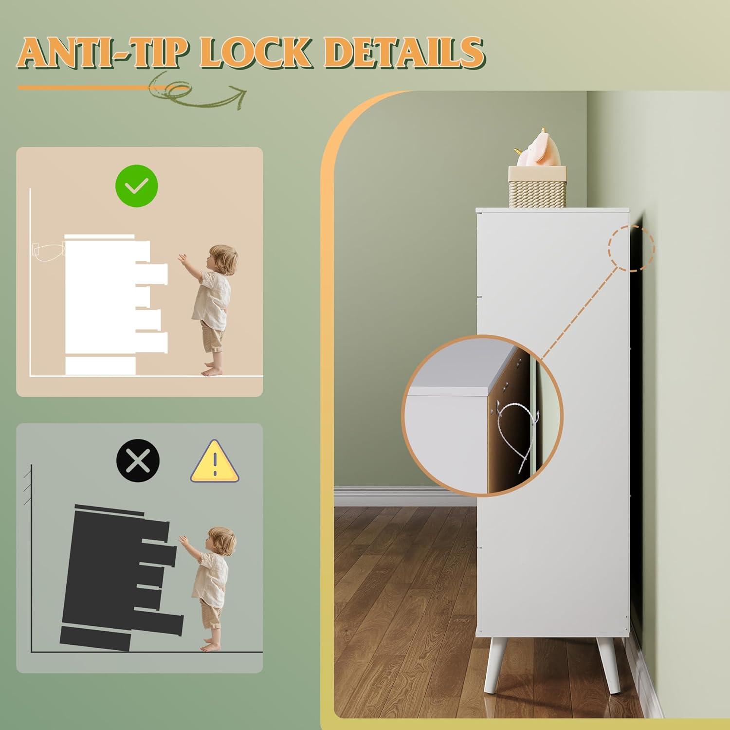 🎄【Structure Stable and Smooth】The dresser drawer features a middle support plate for stability and stronger load capacity, smooth metal slides for easy pulling, which allows drawers to open fully without tipping for better storage.