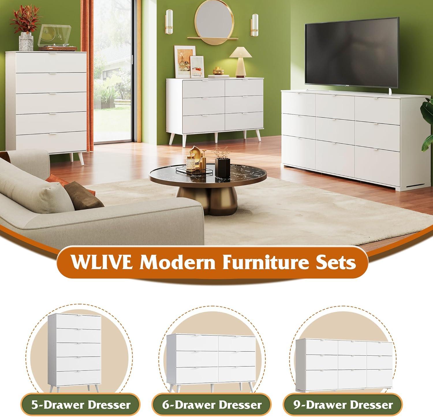 imageWLIVE 6 Drawer Dresser for Bedroom 4724 Wide Wood White Dresser Storage Organizer with Sturdy Metal Handle TV Stand for 55 inch TV Chest of Drawers for Living Room Hallway ClosetWhite