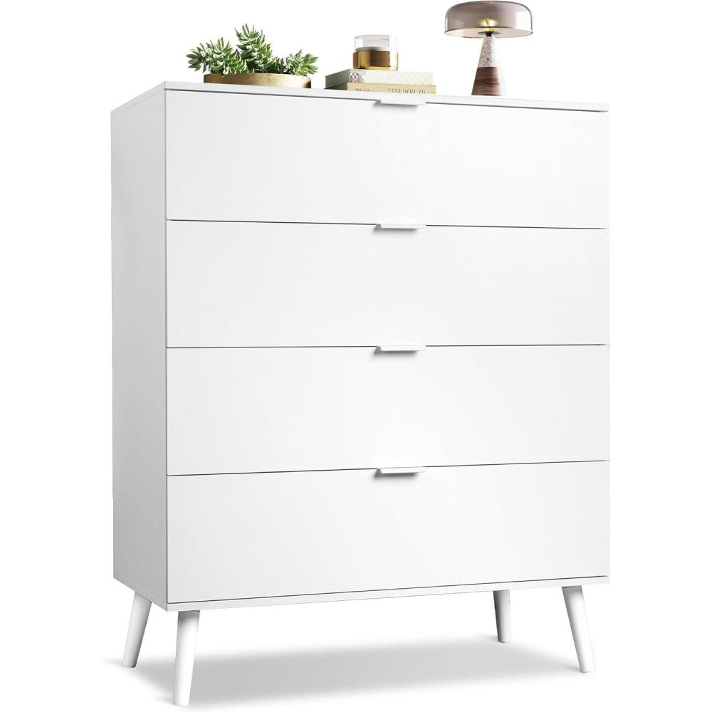 imageWLIVE White Wood Dresser for Bedroom with 4 Drawers Tall Chest of Drawers with Sturdy Metal Frame for Living Room Hallway ClosetBlack