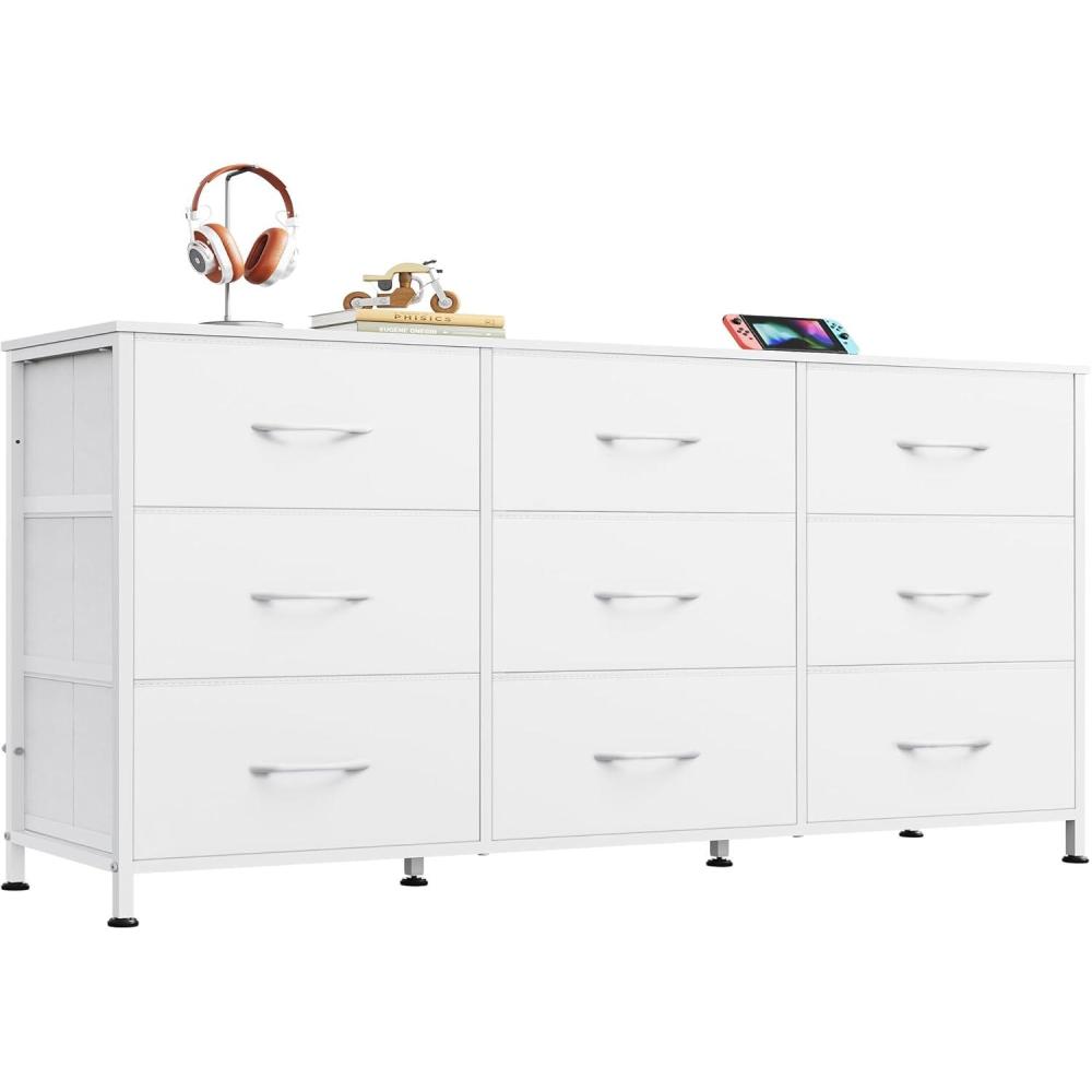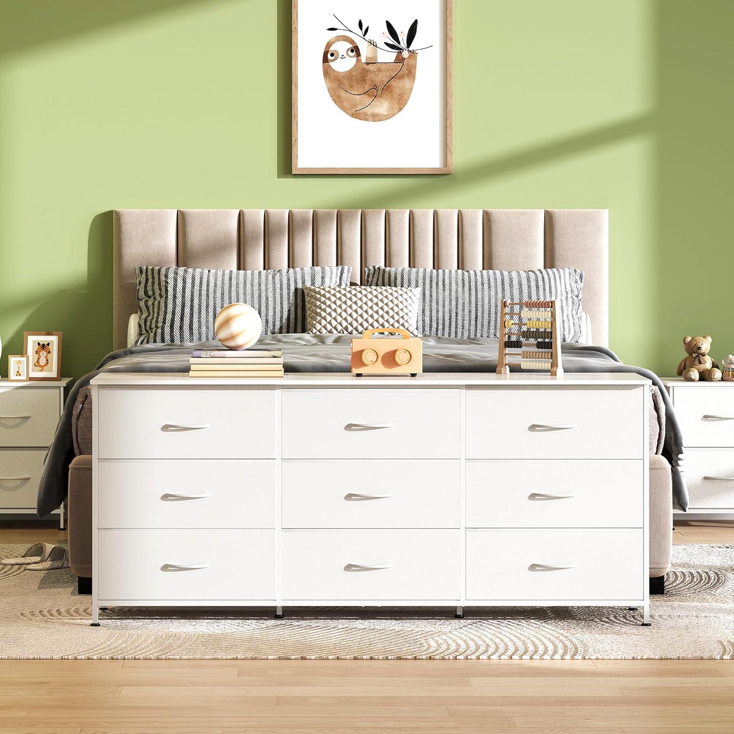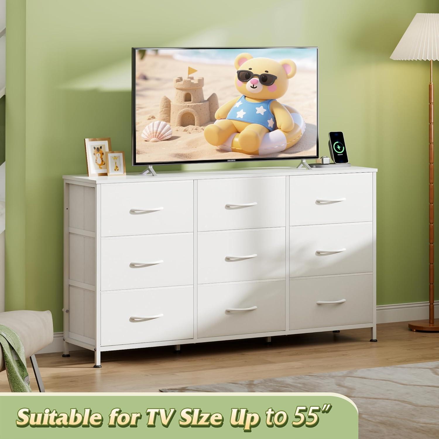 【✨ Stable Structure Safety Assured】This dressers & chests of drawers is designed with 15mm thickened metal steel frame with cross support rods for durability. The bedroom dresser bearing up to 110LBS can still remain stable without tipping. Additional anti-tilt device can easily fix the cabinet to the wall, ensuring the safety of you, your family and pets, and enjoying a convenient life!