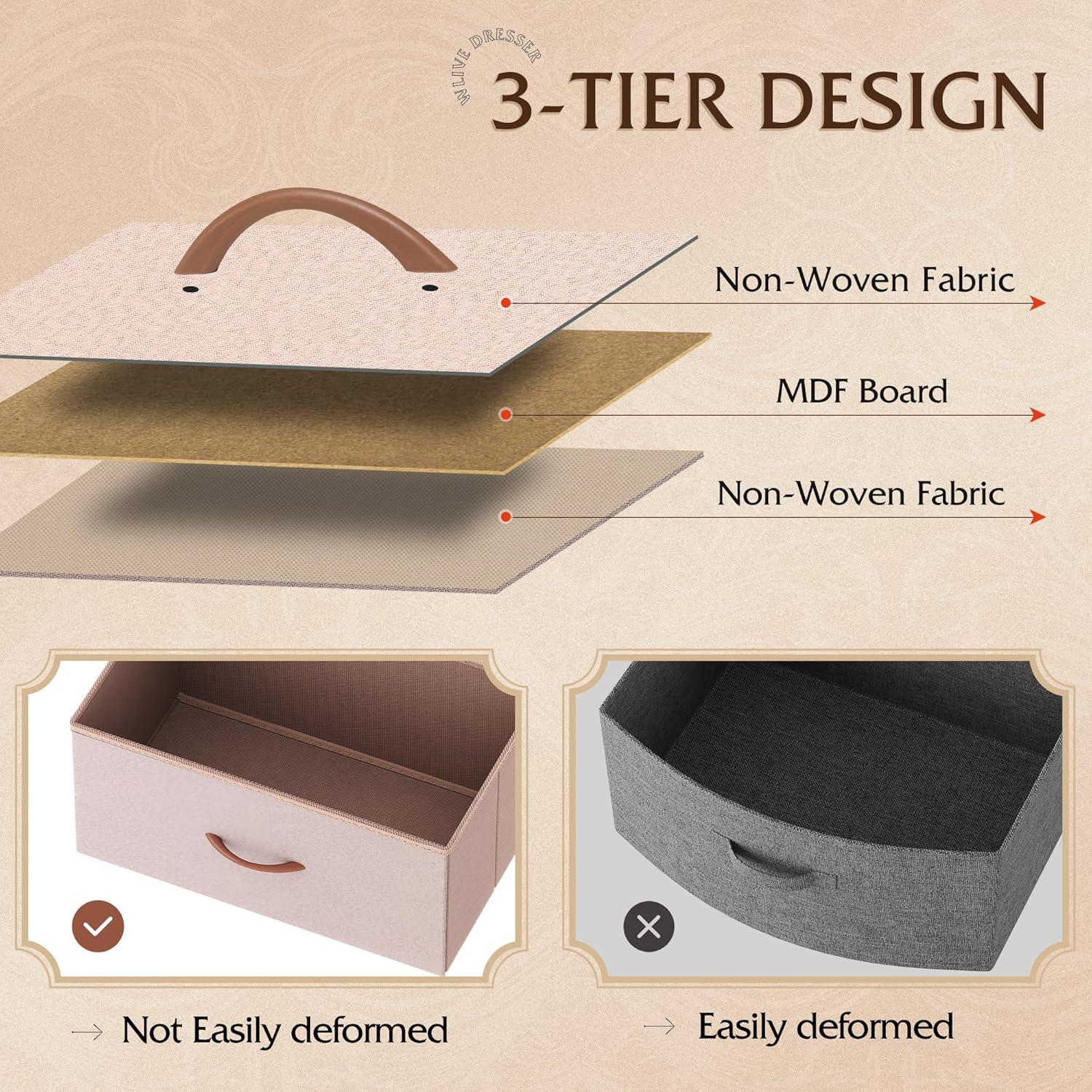 Multifunction Drawer Organizer: This fabric dresser is ideal for wherever you want to keep clutter under control. Feel free to use it as entertainment center, console table or storage chest in the bedroom, living room, closet, hallway…