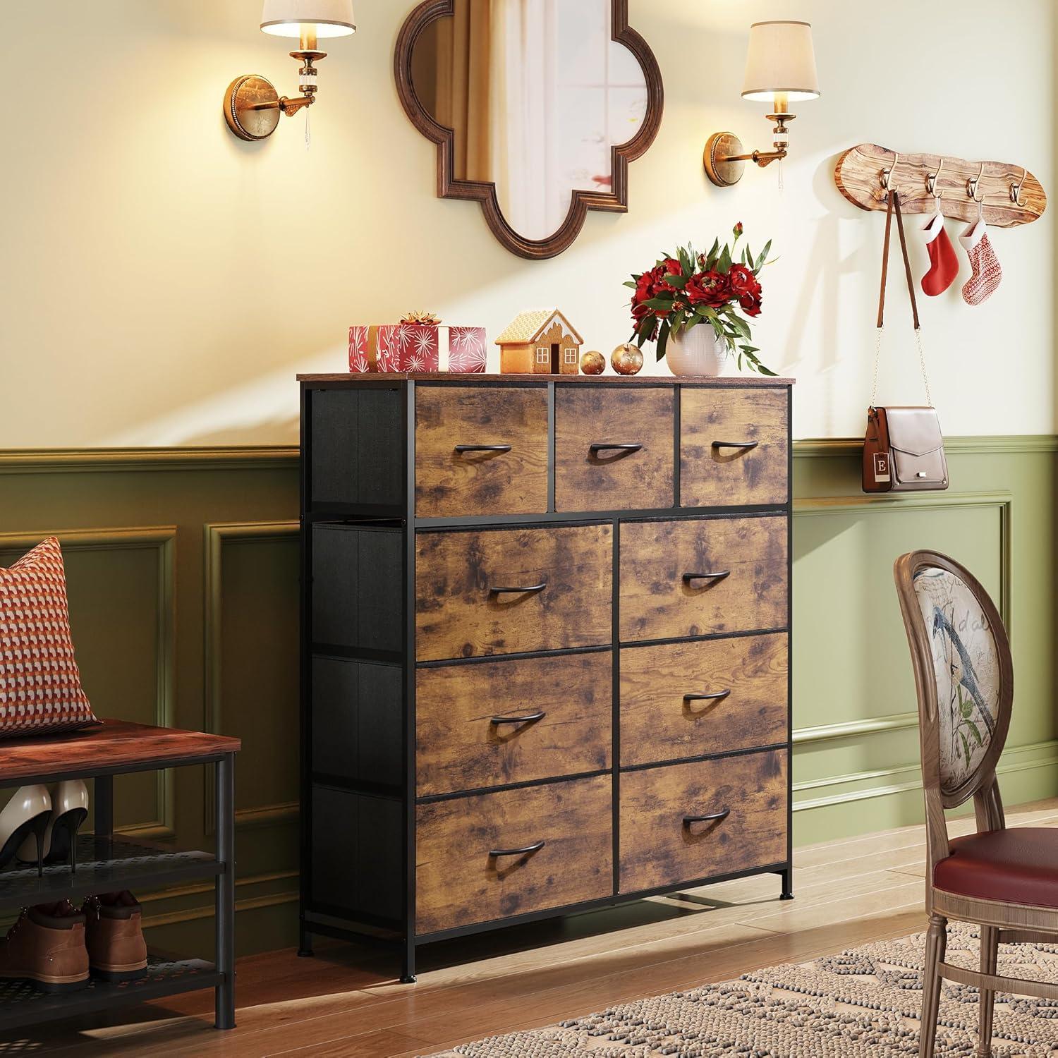 WLIVE 9 Drawer Dresser and 4 Drawer Dresser Set, Dresser for Bedroom, Closet, Hallway, Storage Dresser Organizer Unit, Dressers & Chests of Drawers with Fabric Bins