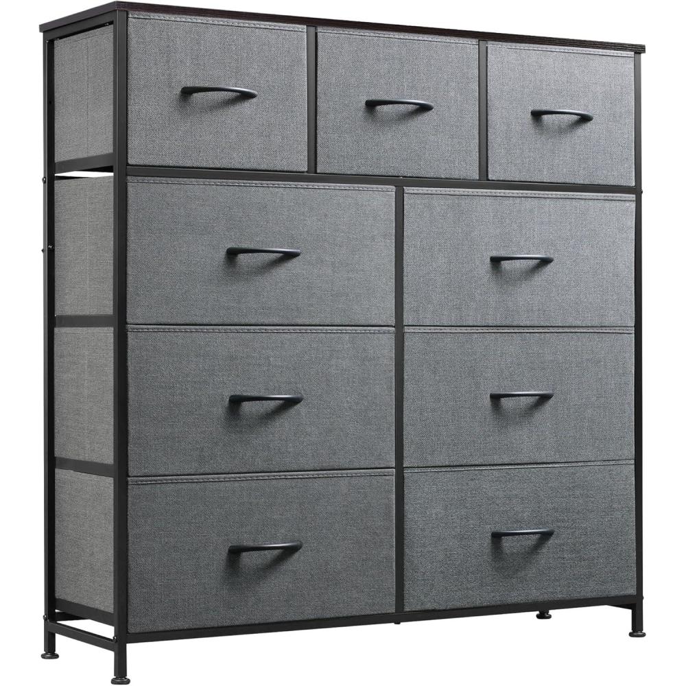Roomy Storage Space: The 9 foldable deep drawers are so spacious that they provide endless organizational possibilities. Wooden top is great for lamps, clocks, glasses and other daily essentials, keeping them in your reach.