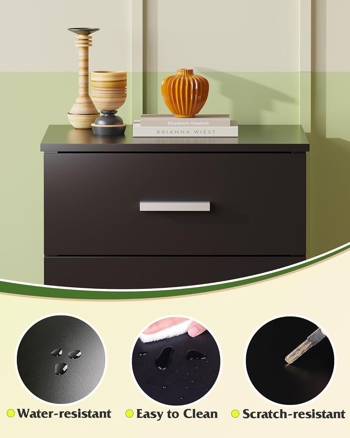 【Sturdy and Durable】This bed side table's weight capacity is 110 LBS,which cater to your daily needs. The solid wooden frame structure effectively guarantee its stabilty and durability. Top of the wood dresser is made of water proof board, you can put coffee and other drinks on without worrying potential risks.