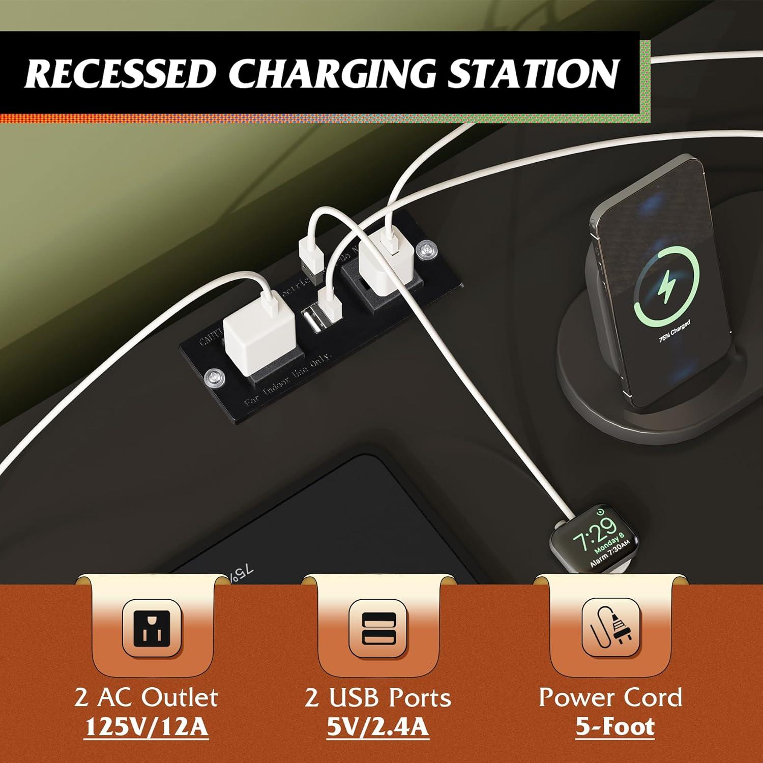 【✨ With Power Outlet】Say goodbye to messy wires! TV stands is equipped with 2 AC sockets +2 USB ports, 1.5m flexible cable length, TV, game console, router a power board can be done, instant increase desktop cleanliness by 50%, through UL/ETL certification, electricity safety!