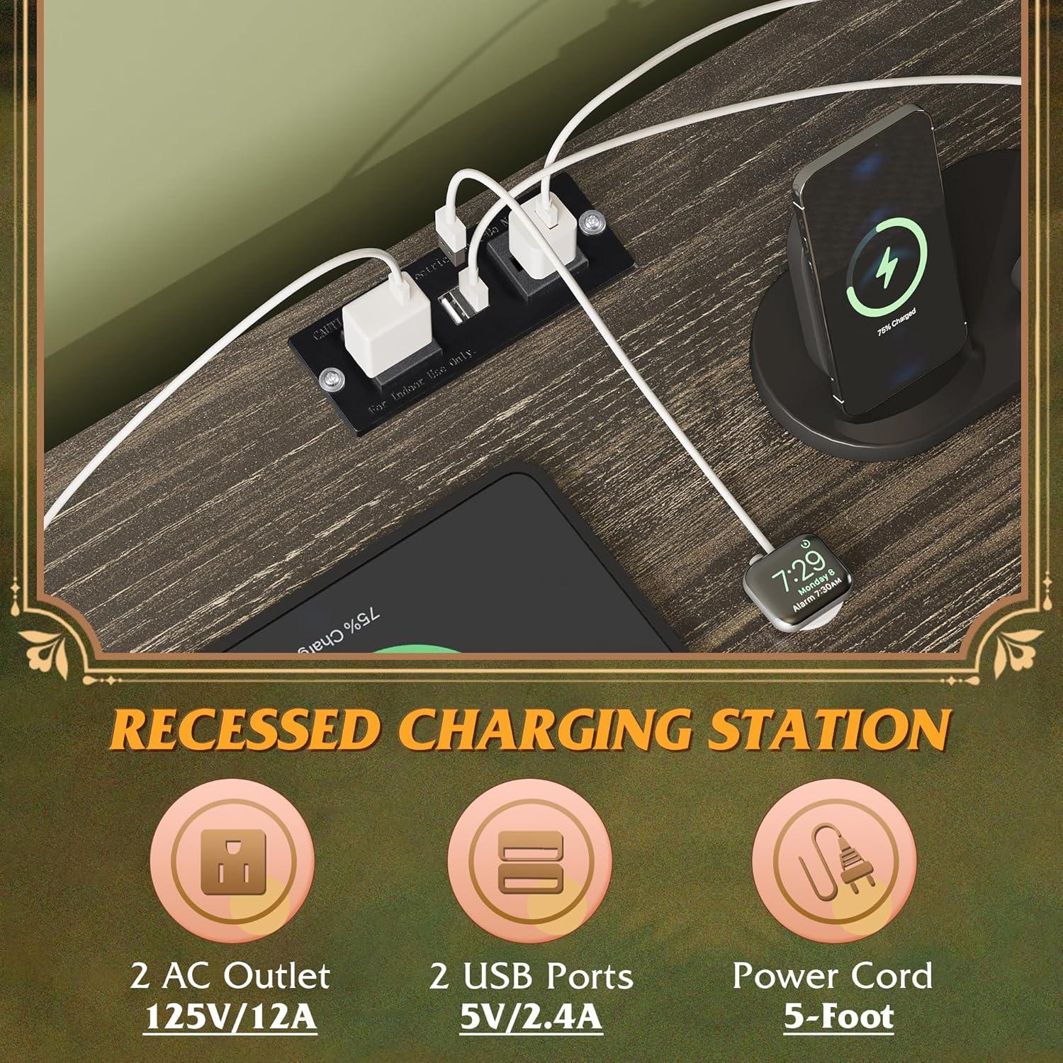 【✨ With Power Outlet】Say goodbye to messy wires! TV stands is equipped with 2 AC sockets +2 USB ports, 1.5m flexible cable length, TV, game console, router a power board can be done, instant increase desktop cleanliness by 50%, through UL/ETL certification, electricity safety!