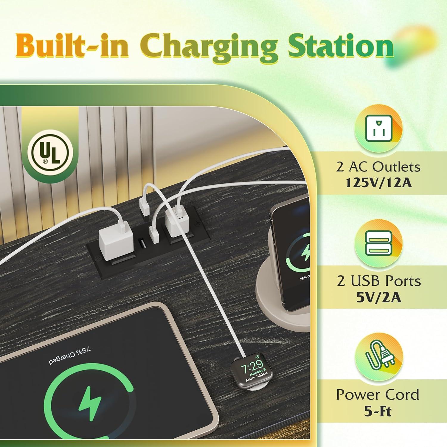 【✨ With Power Outlet】Say goodbye to messy wires! TV stands is equipped with 2 AC sockets +2 USB ports, 1.5m flexible cable length, TV, game console, router a power board can be done, instant increase desktop cleanliness by 50%, through UL/ETL certification, electricity safety!