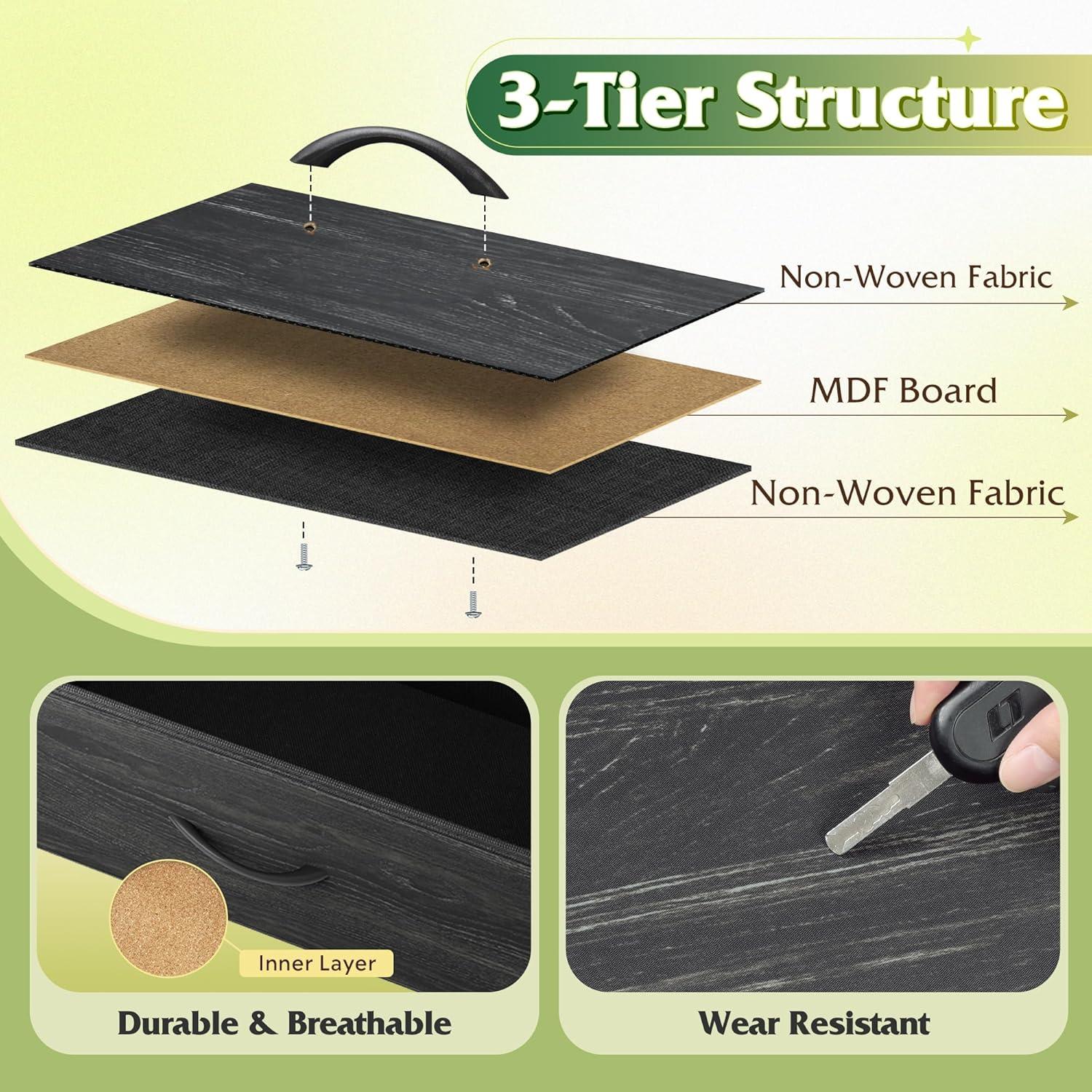 【✨ Durable Quality Material】The drawer consists of 3 layers of high-quality fiberboard, easy-to-clean PVC and breathable non-woven fabric, the desktop is made of P2 grade artificial wood, scratch resistant and easy to clean, the material process and safety are strictly tested by EPA&SGS, health and environmental protection, excellent quality for you and your family to create a peaceful life!
