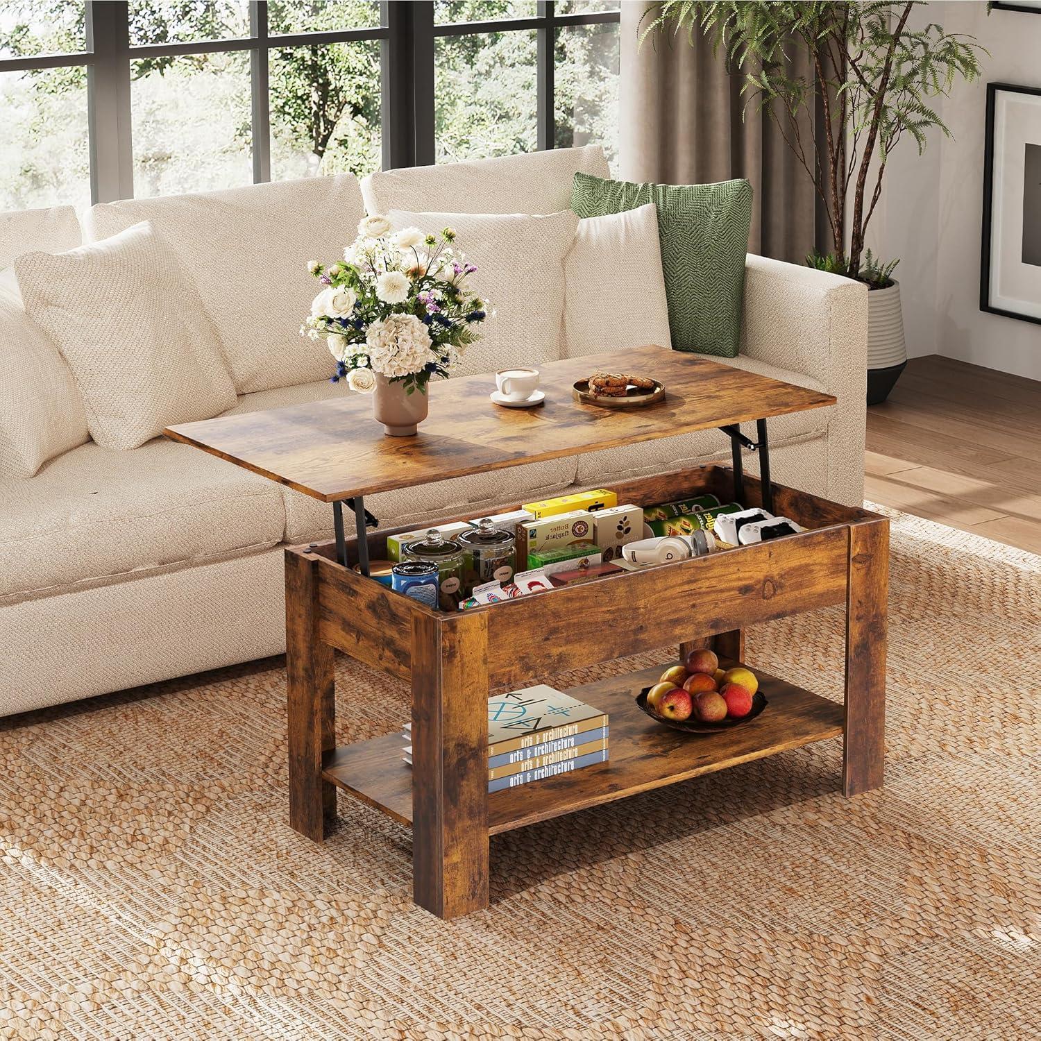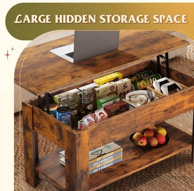WLIVE Coffee Table, 39" Lift Top Coffee Table with Hidden Compartment, Storage Shelf and Lifting Top for Home Living Room, Office and Reception Room, Brown(Brown)