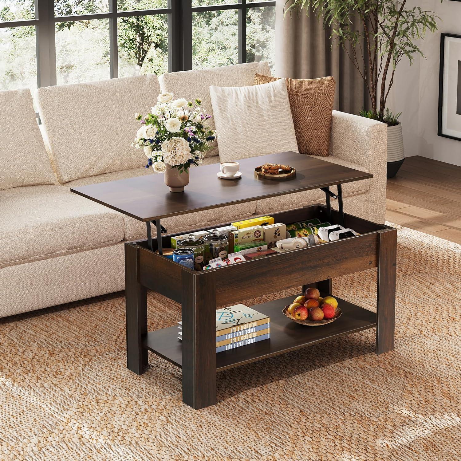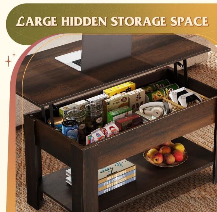 WLIVE Coffee Table, 39" Lift Top Coffee Table with Hidden Compartment, Storage Shelf and Lifting Top for Home Living Room, Office and Reception Room,Espresso(Espresso)
