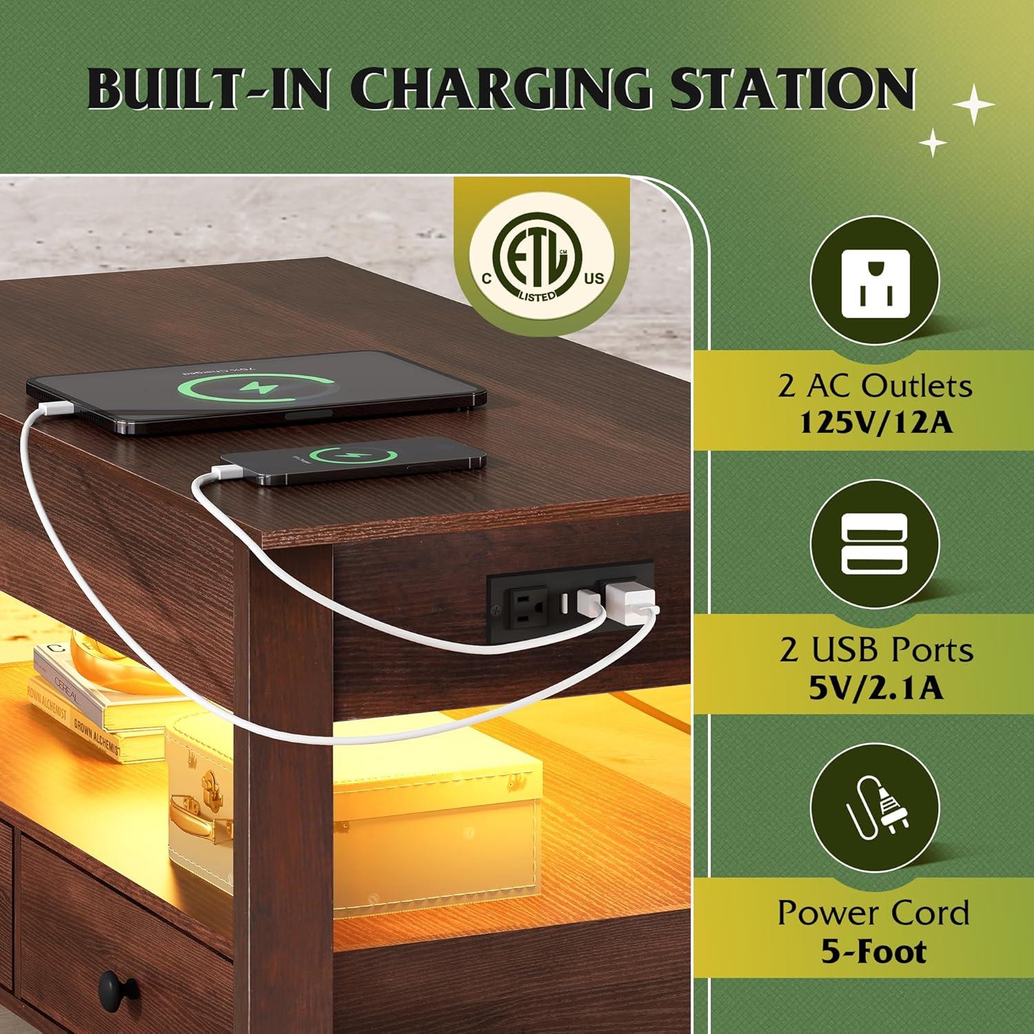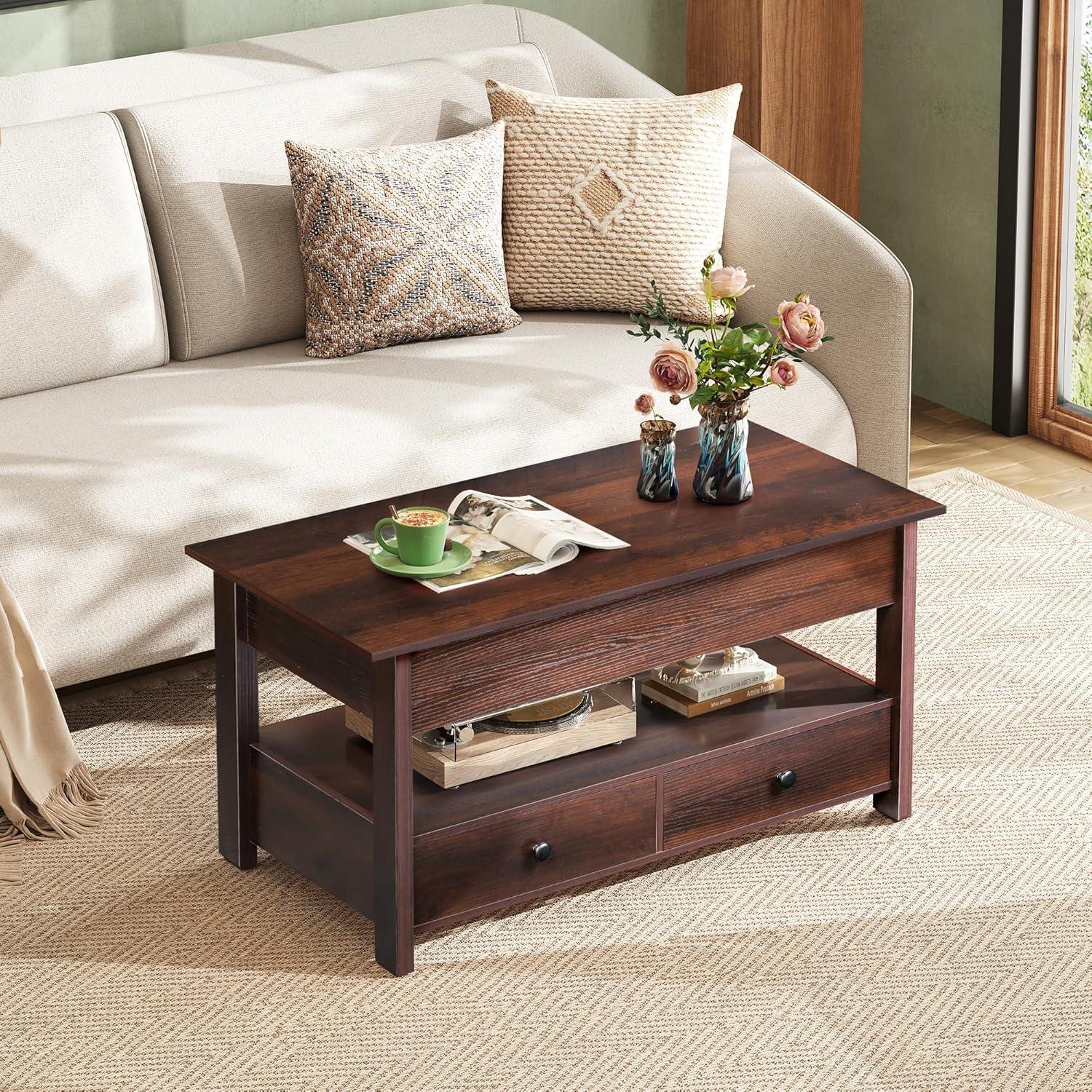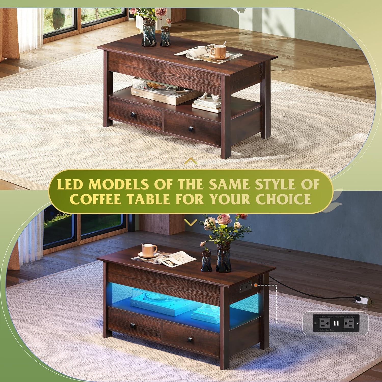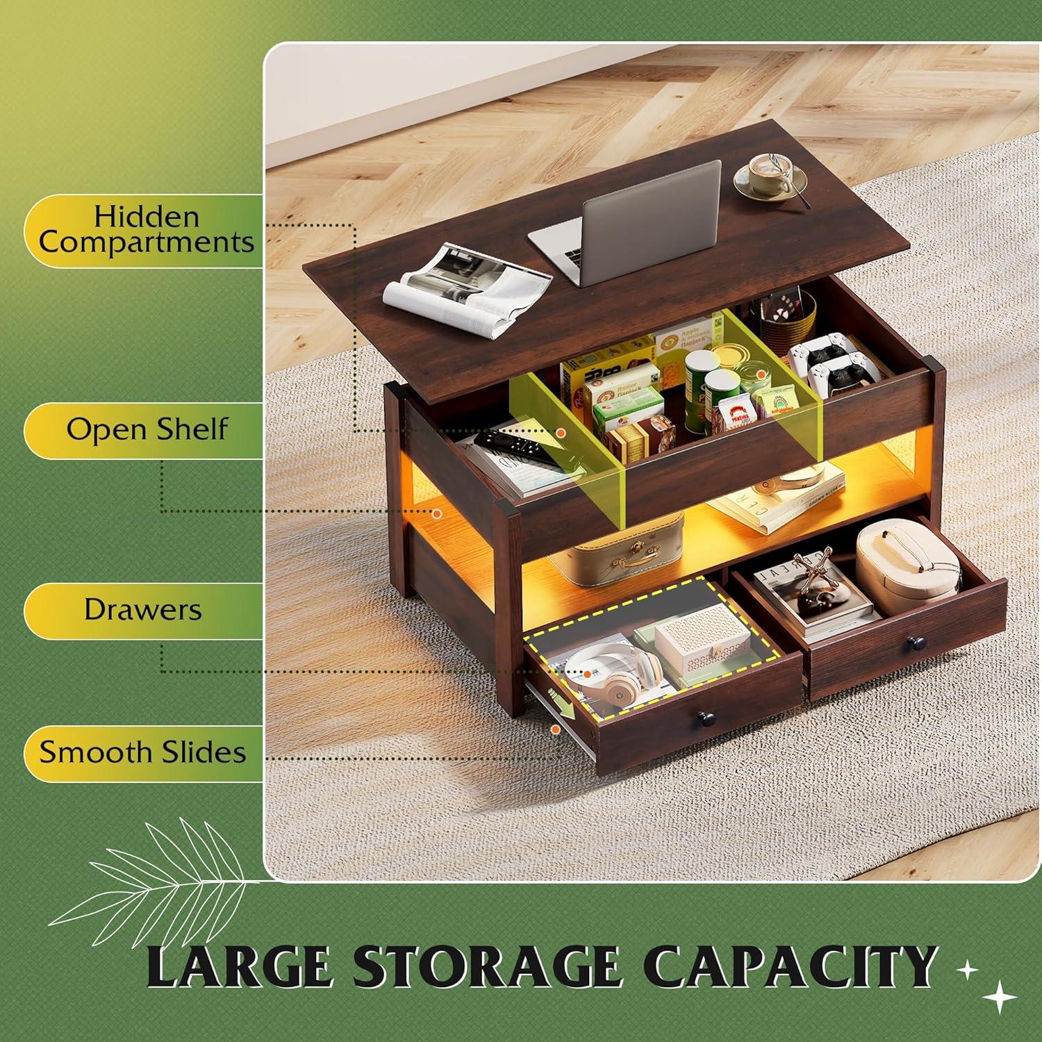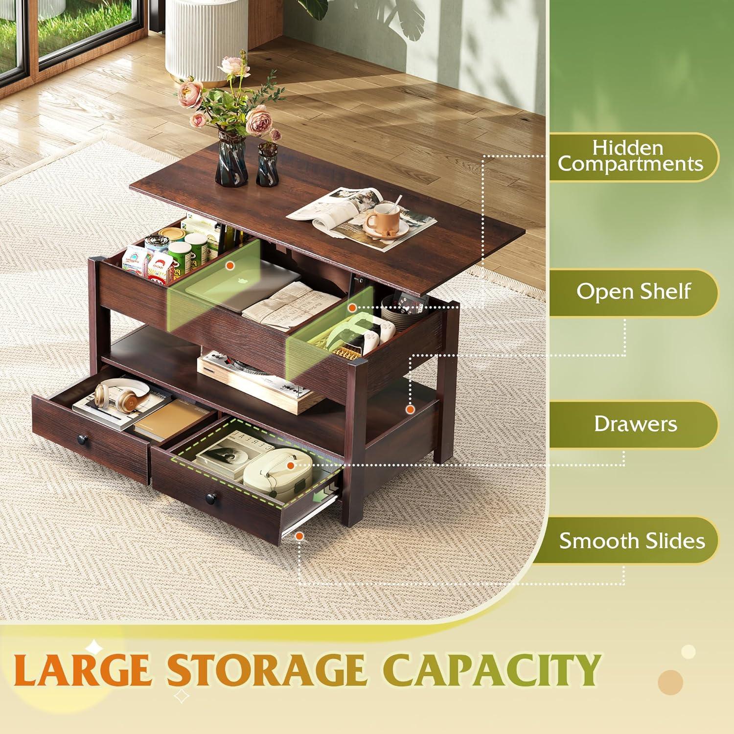 【Extra Large Storage Space】The hidden storage compartment underneath the lift tabletop can keep your items away from dust; the design of two drawers and one open partition can fully expand the storage space to meet your diverse storage needs.
