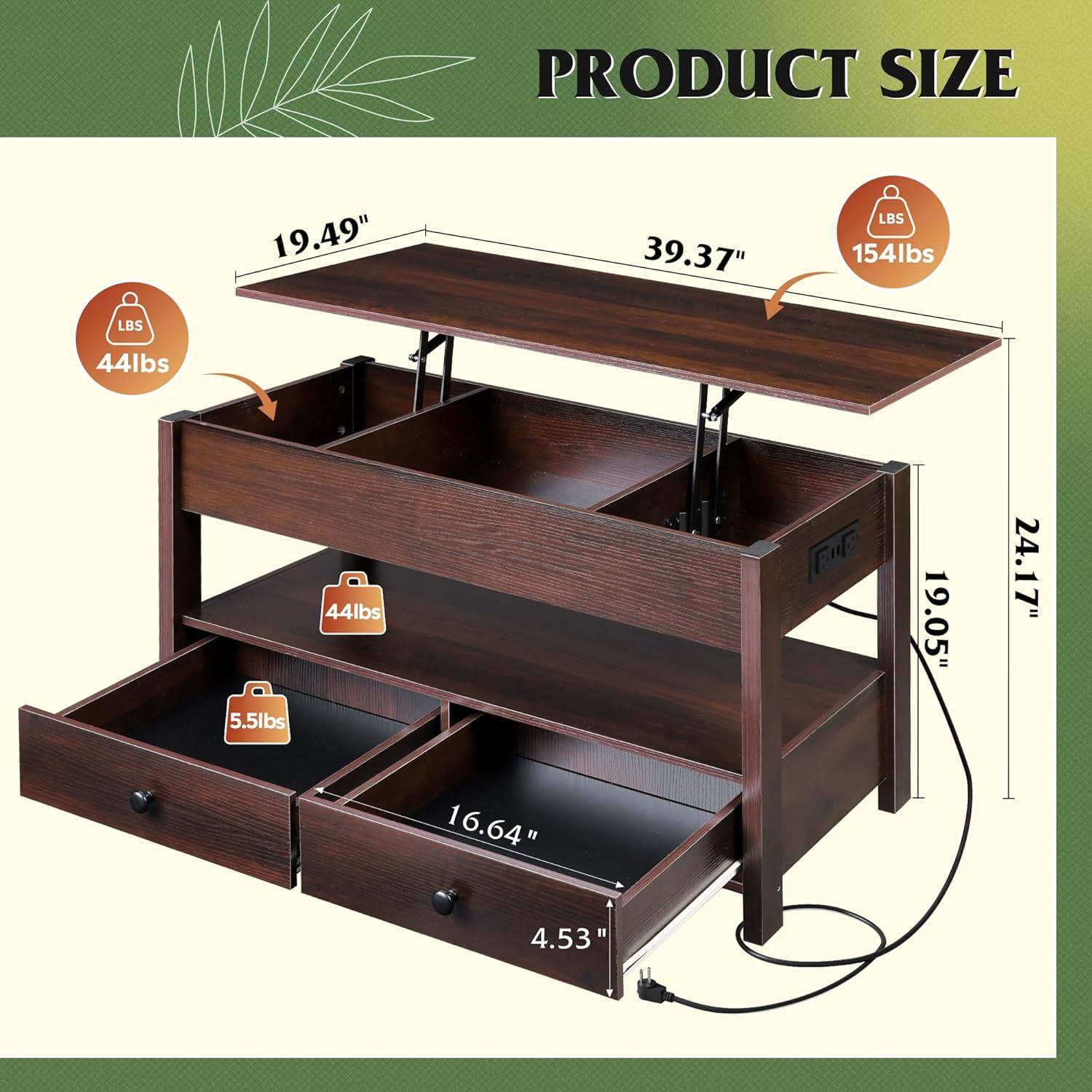 【Quality Lift Mechanism】The high-quality hydraulic lifting mechanism on this coffee table offers solid support, allowing you to effortlessly lift the top and lower it slowly and safely, preventing any accidental pinches for you and the kids while in use.
